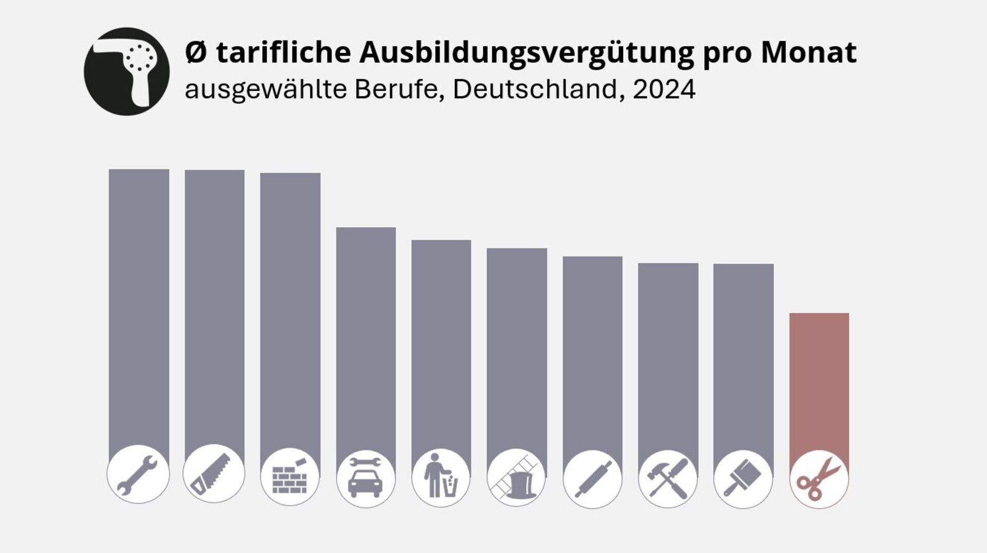Ausbildungsvergütung 2024: Rekord Anstieg doch Friseure wieder auf letztem Platz