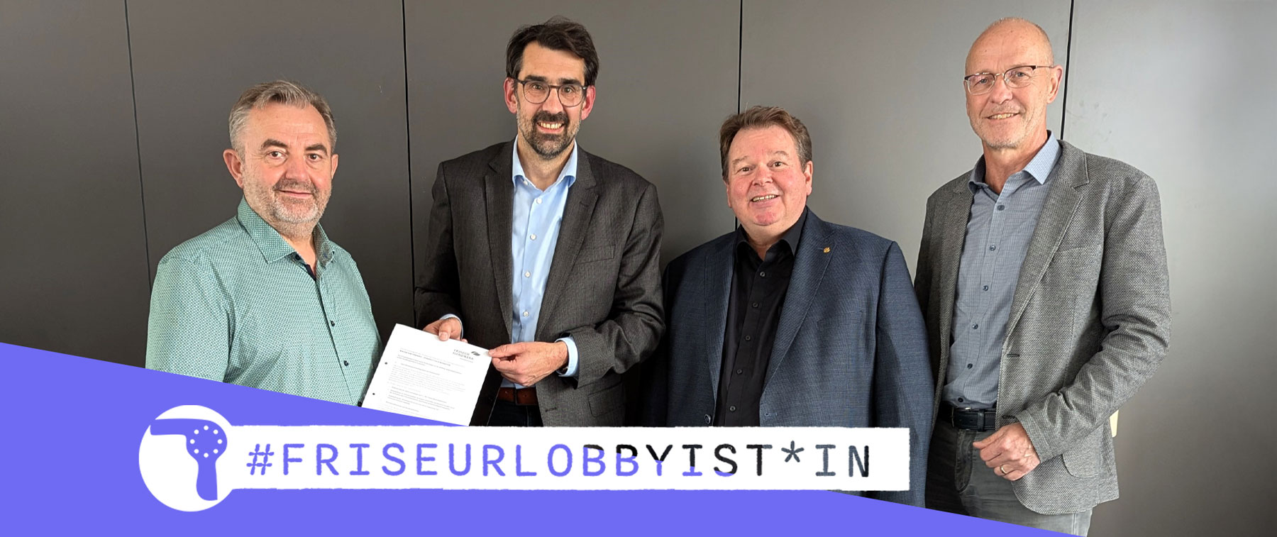 Der CDU Abgeordnete Wolfgang Dahler versprach, die Anliegen der Betriebe in Berlin zu vertreten. Das Forderungspapier des Zentralverbandes des Deutschen Friseurhandwerks übergaben ihm Obermeister Boris Aierstock, Landesinnungsmeister Dirk Reisacher und Fabian Bacher, Geschäftsführer der Kreishandwerkerschaft Biberach.