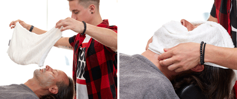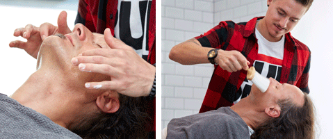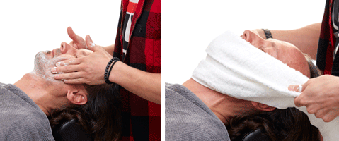 Step 5| Tragen Sie im Anschluss eine Pre-Shaving Cream auf. Ein erneutes Auflegen der Kompresse lässt Kunde wie Haut endgültig entspannen.