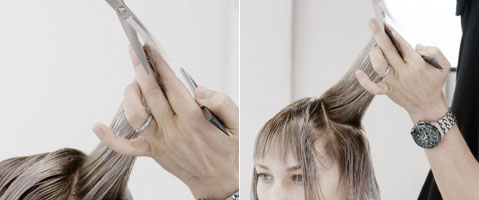 Step 16| Den Haaransatz im flachen Point-Cut neu definieren und ausarbeiten.