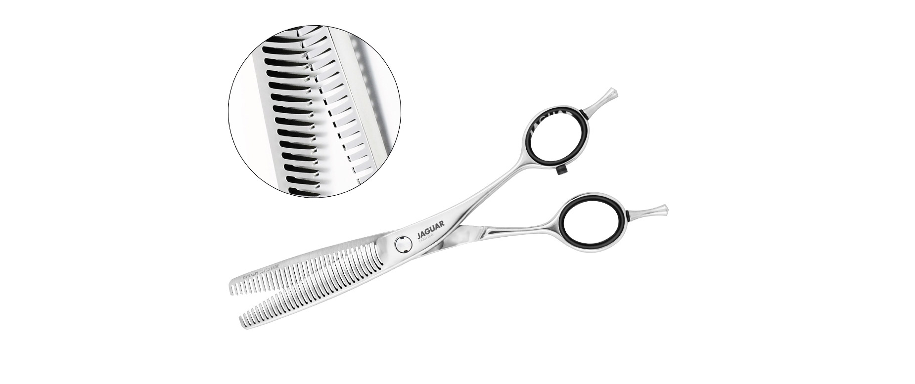 Das perfekte Tool für den präzisen Kurzhaarschnitt ist die neue DYNASTY 33/33 FADE aus der Jaguar GOLD Line. Die doppelte Effilierschere (Größe 6.0‘‘) sorgt nicht nur ein besonders feines Schnittbild, sondern kreiert dank ihrer angenehmen Handhabung auch ein sanftes Schneidegefühl.