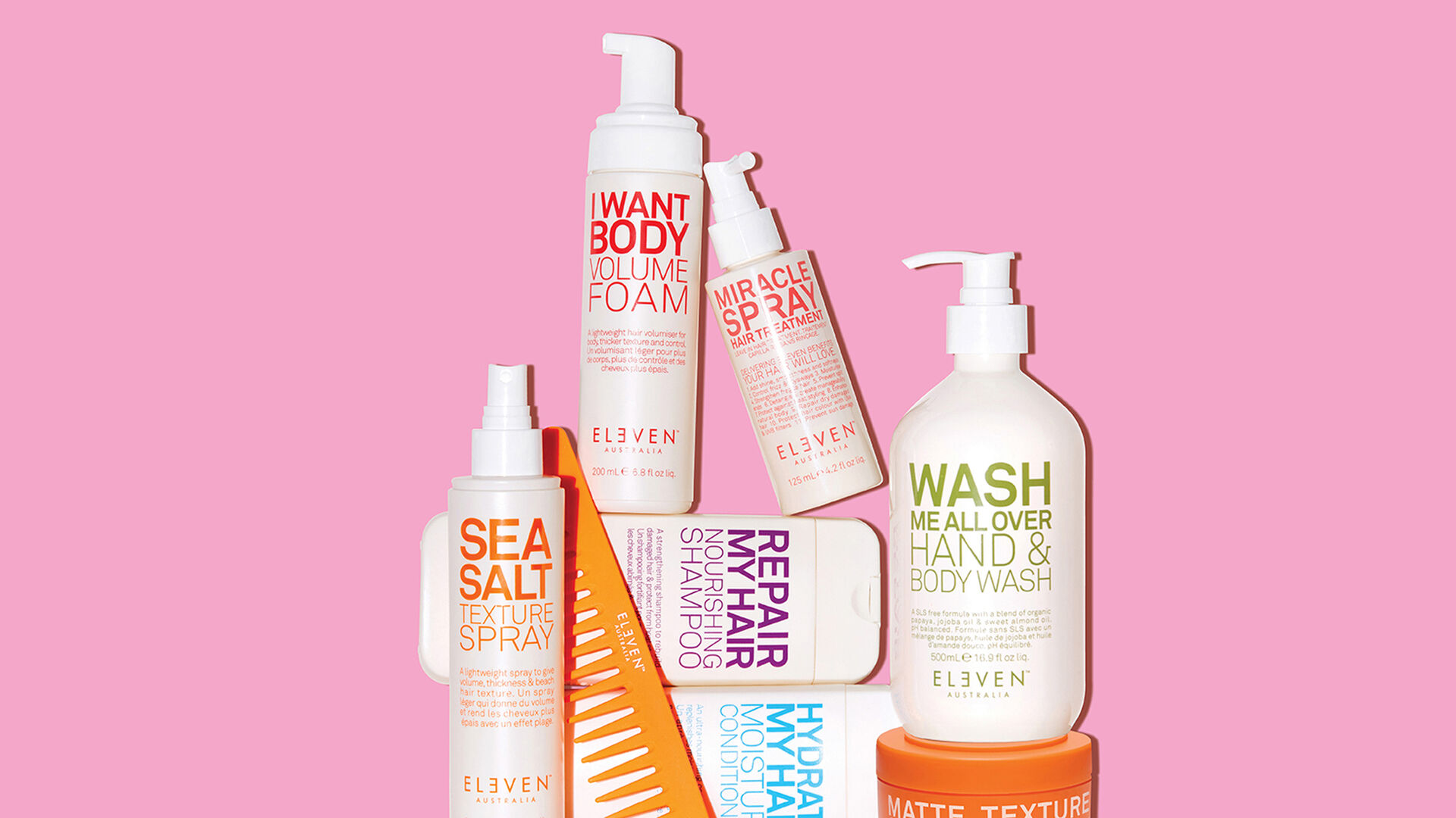 Unkomplizierte Anwendung, klare Wirkung und hochwertige Produkte, die genau das tun, was sie versprechen, stehen im Mittelpunkt der Haar- und Körperpflegeroutinen von Eleven Australia. Das Sortiment umfasst rund 40 Produkte, die in klar definierte Ranges unterteilt sind. Jede Range ist auf ein konkretes Bedürfnis ausgerichtet, von Feuchtigkeit, Volumen und Reparatur über Glättung, Lockenpflege und Blondpflege bis hin zu Kopfhaut-, Styling- und Body-Produkten. Dank der übersichtlichen Range-Struktur lassen sich die passenden Produkte ganz einfach kombinieren. Klare Produktnamen zeigen sofort, wofür ein Produkt gedacht ist und ermöglichen eine individuelle Pflegeroutine.