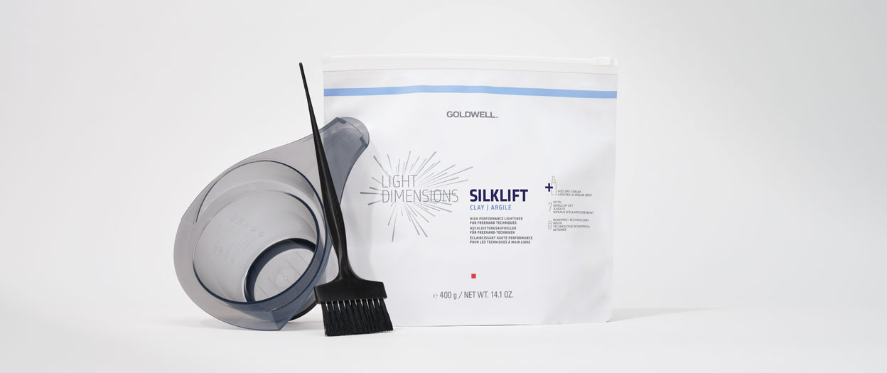 Die angenehme Textur des neuen SilkLift Clays ermöglicht es, das Haar mit Intuition und Präzision aufzuhellen – und schafft neue Möglichkeiten für kreative Entfaltung. Die Formulierung mit Kaolin-Clay sorgt für eine seidige Konsistenz, die sich leicht verteilen lässt und nicht tropft. Für natürlich wirkende Balayage- und Aufhellungseffekte. Diese innovative Ergänzung im LightDimensions Sortiment bietet bis zu 7 Tonhöhen Aufhellung in einer gebrauchsfertigen, soft-to-solid Formulierung.