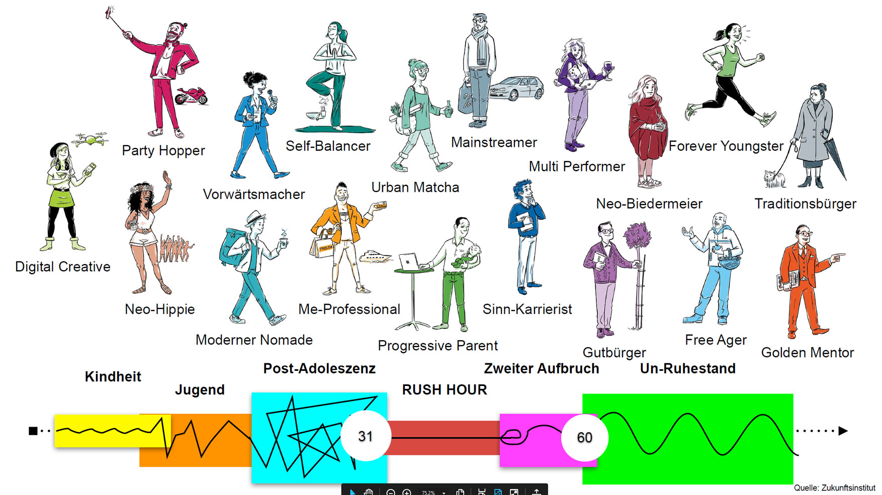 Längst lassen sich Menschen nicht mehr in soziodemografische Muster pressen. Man muss in Lebensstilen denken, wenn es um Kunden geht. Das Zukunftsinstitut hat 18 Lebensstile definiert, in denen sich vielleicht auch deine Zielgruppen tummeln und zielgerichteter bedient werden kann. ► Lebensstile Zukunftsinstitut