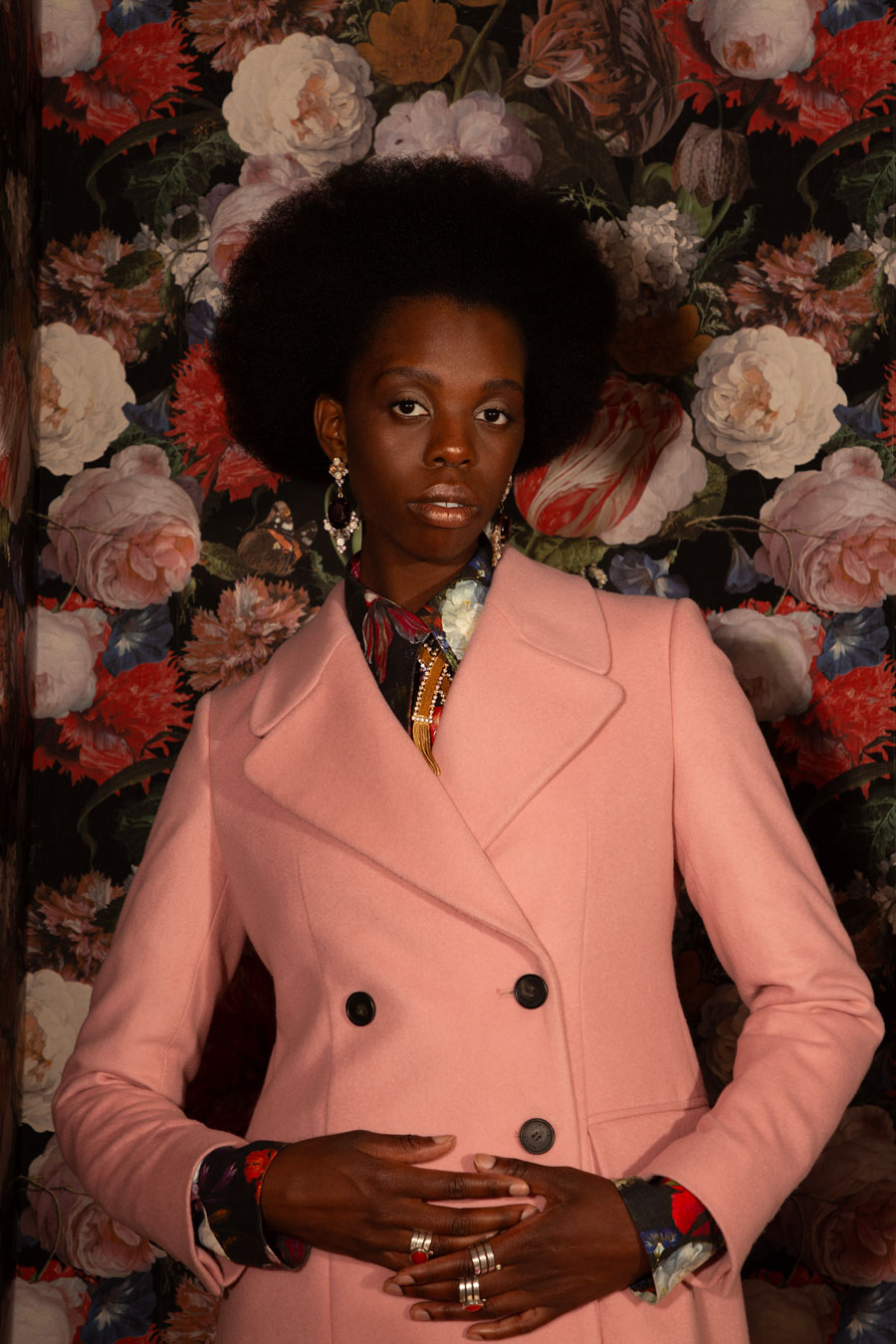 Bei den Looks bedient sie sich einer alt bewahrten Technik, die man noch aus der Ausbildung kennt: Langes Haar wurde auf große Samtwickler gedreht. Sie schaffen luftige, divenhafte Wellen.