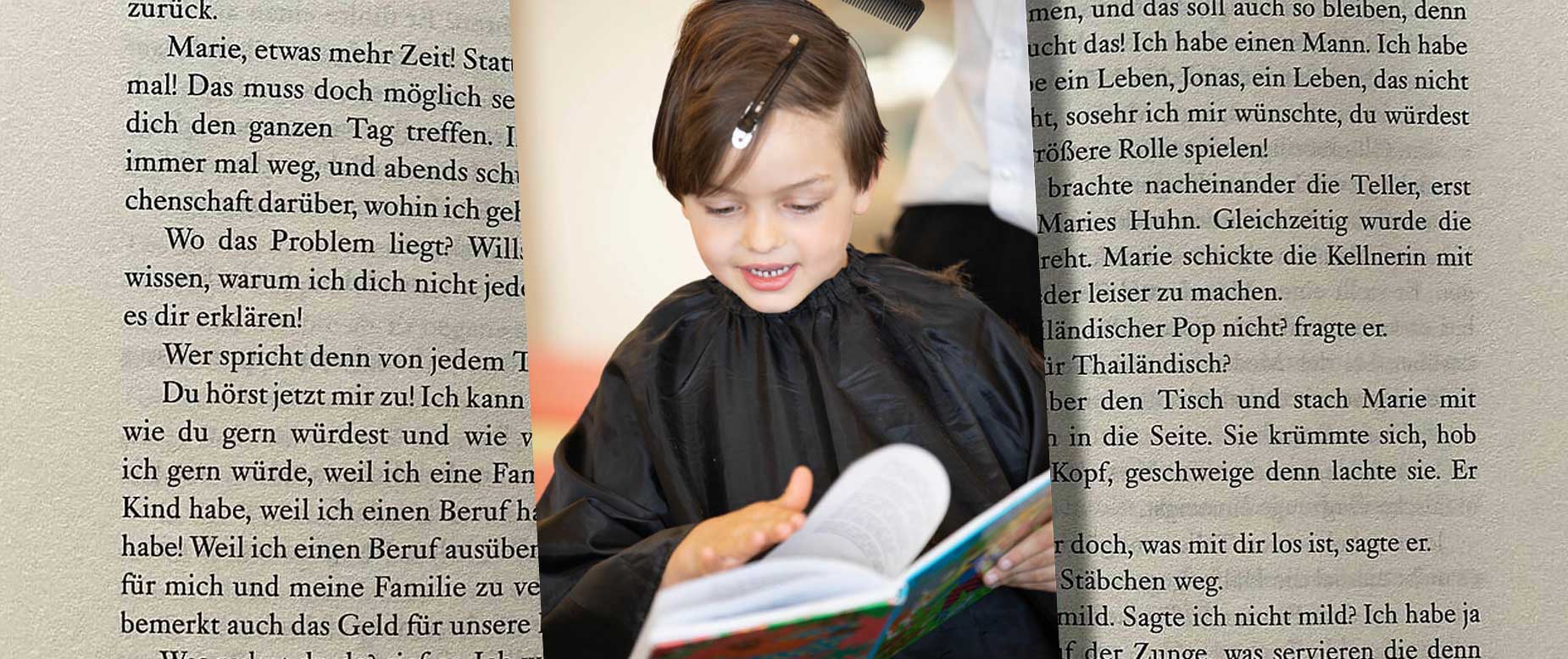 Kinderhaarschnitt mit Lieblingsbuch