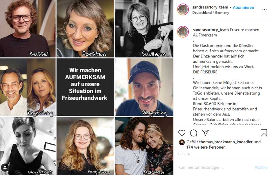 Unsere Salons arbeiten alle nach den Corona - Richtlinien mit eingehaltener Kundenanzahl, Mindestabstand, Hygienevorschriften, Mundschutz, manche sogar mit Fiebermessung. Und trotzdem mussten wir schon zweimal schließen.
