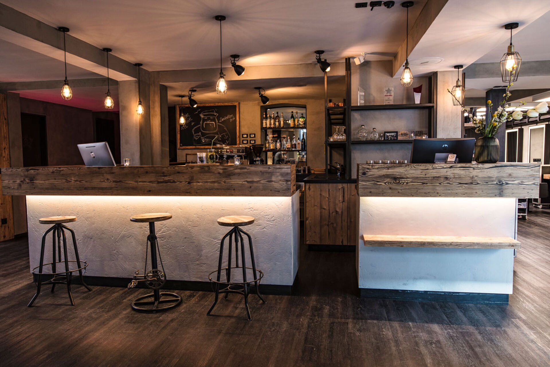 Seit 2006 in einer imposanten Villa in Hamburg Rothenbaum untergebracht, erfindet Michi Jung seinen Salon immer wieder neu, egal, was gerade hip ist. Das letzte Design-Update war 2018: Naturmaterialien wie Holz, Stein und Metall ergeben einen coolen Industrial Style mit digitalsten Gadgets: