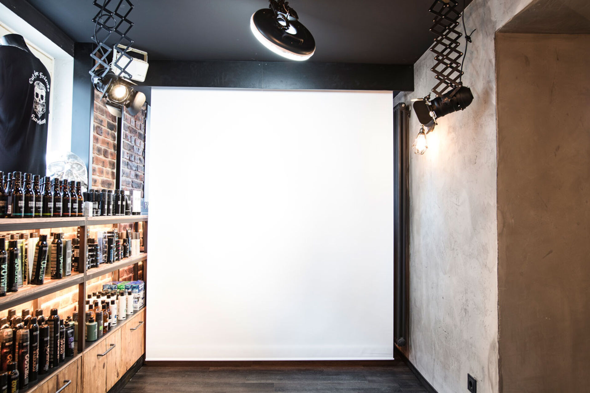 - Vorher-/Nachher-Fotos entstehen an der eigens installierten Fotowand mit professionellen Scheinwerfern und unterschiedlichen Hintergründen.
