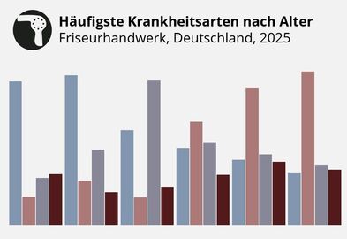 Wie gesund ist das Friseurhandwerk? FriseurmitarbeiterInnen sind im Vergleich zu allen Branchen seltener aber länger krankgeschrieben. Auffällig sind zudem die Altersunterschiede. Welche Krankheitsarten prägen die Branche? Alle Kennzahlen und Details...