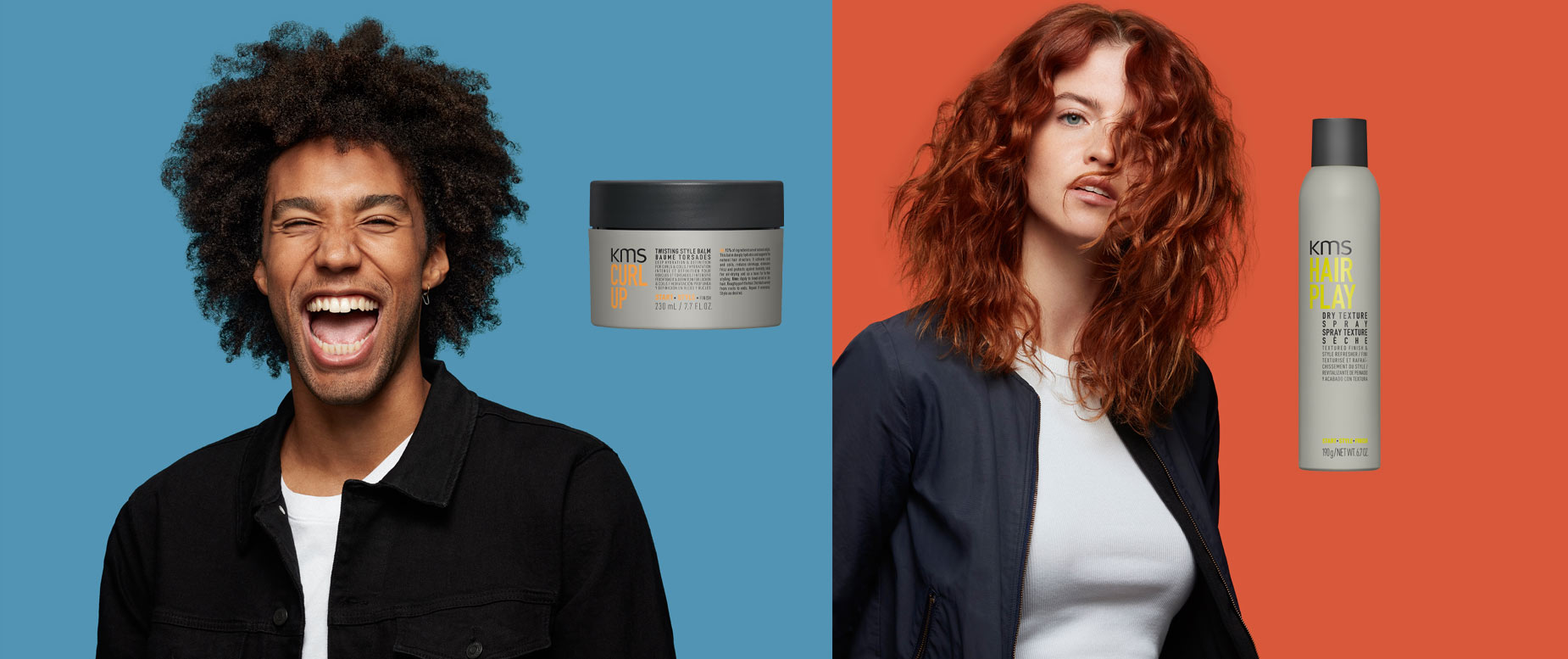 Von glatt bis wellig und lockig: das neue KMS HAIRPLAY Texturspray und KMS CURLUP Balm bilden ein Styling-Allrounder-Duo, das jedes Haar glücklich macht.