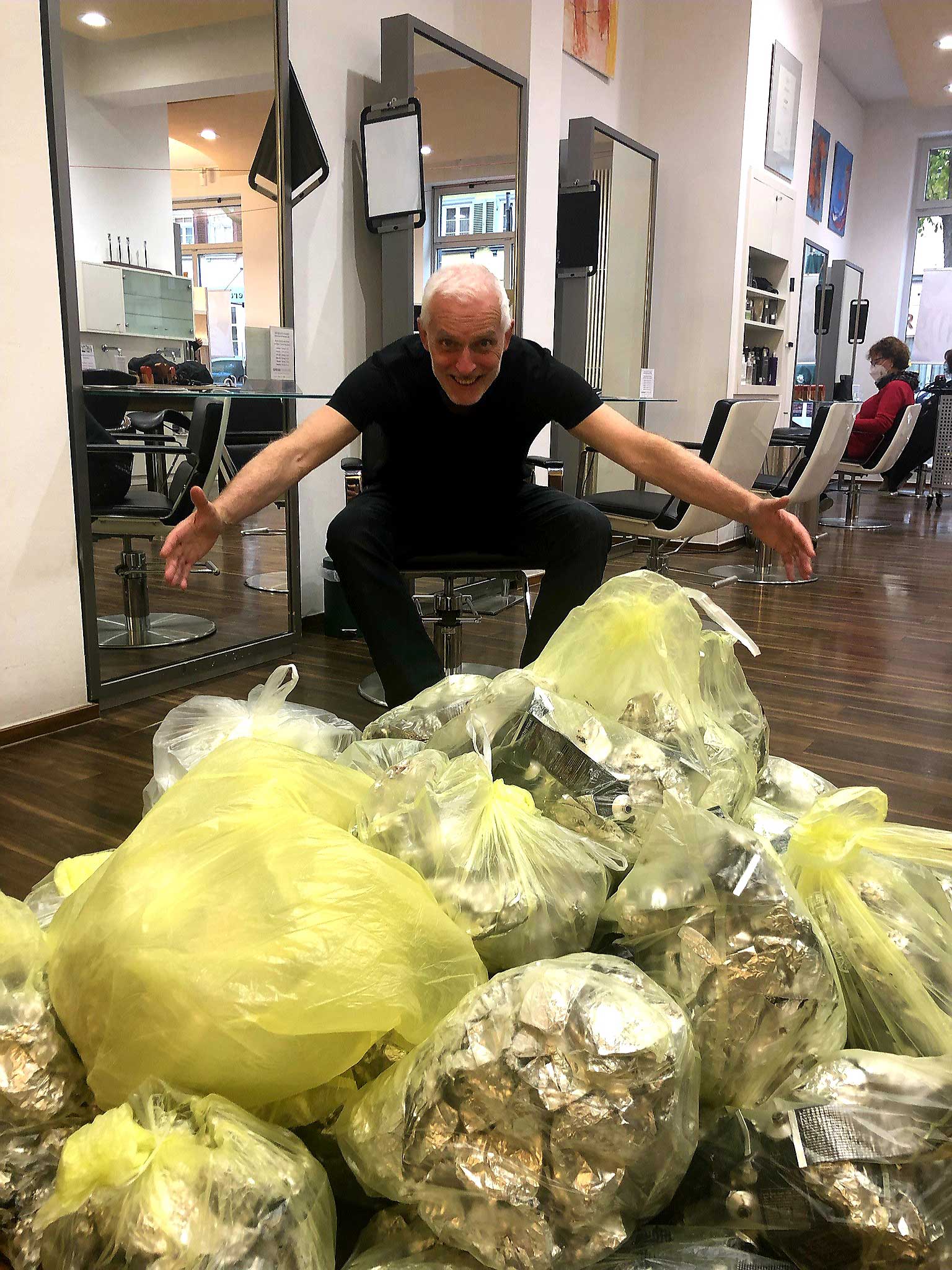 Jochen Reinhards Vorhaben ist bei kleineren und mittleren Salons „mindestens 85kg Alu im Jahr“ einzusammeln. „Wie viel Alu-Müll Salons produzieren kommt immer auf die Größe, die Anzahl der Mitarbeiter und die Intensität an, wieviel Färbungen stattfinden und ob ein Salon darauf spezialisiert ist. Im Durchschnitt rechnen wir über alle mit 150 kg Alu pro Jahr und Salon, welches wir einem Recycling zuführen können. Verbindliche und repräsentative Zahlen lassen sich aber erst nach den ersten Rückgaben sagen.“, Reinhard weiter.
