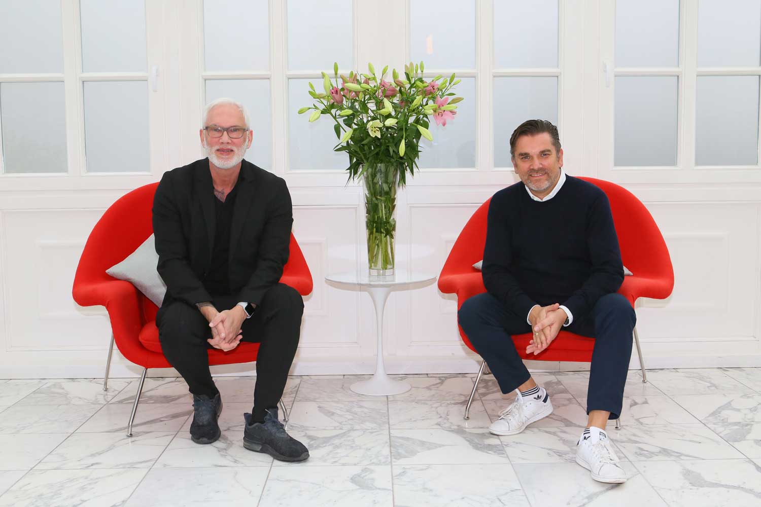 Der verrückte Gedanke einen Salon gemeinsam zu gründen, gemeinsam zu arbeiten und zu kooperieren, kam den beiden renommierten Friseurunternehmern Anfang dieses Jahres in den Sinn: Dirk Brinkmann suchte einen neuen Salon, denn die Stadvilla an der Rothenbaumchaussee, in der sich sein Salon befand, stand kurz vorm Verkauf. Corona und Lockdown bedingt lag das gemeinsame Projekt lange on hold.