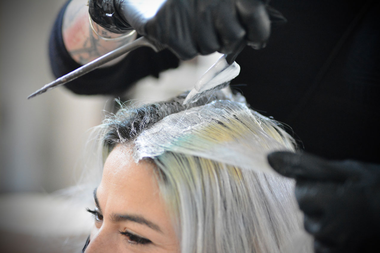 • Bleiche die Haarwurzeln mit einem 6% Entwickler.