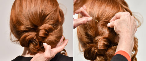 Step 9| Die Tampelpartie in Wellen nach hinten legen und mit Clipsen provisorisch feststecken.