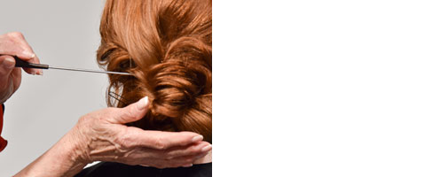 Ausschließlich den Gummi mit einem Bobby-Pin fixieren und in eine harmonische Form zupfen.