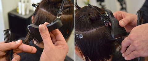 Step 2| Anschließend trockenföhnen mit Haartrockner Drynamic P und Rundbürste Atelier Graphite XL.
