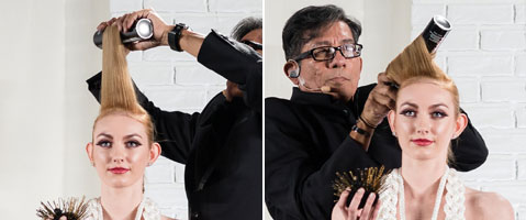 Keine Rolle zur Hand? Macht nichts. Sam Villa, Global Artistic Ambassador for Redken, zeigt wie´s anders geht ... Mit einer Spraydose.