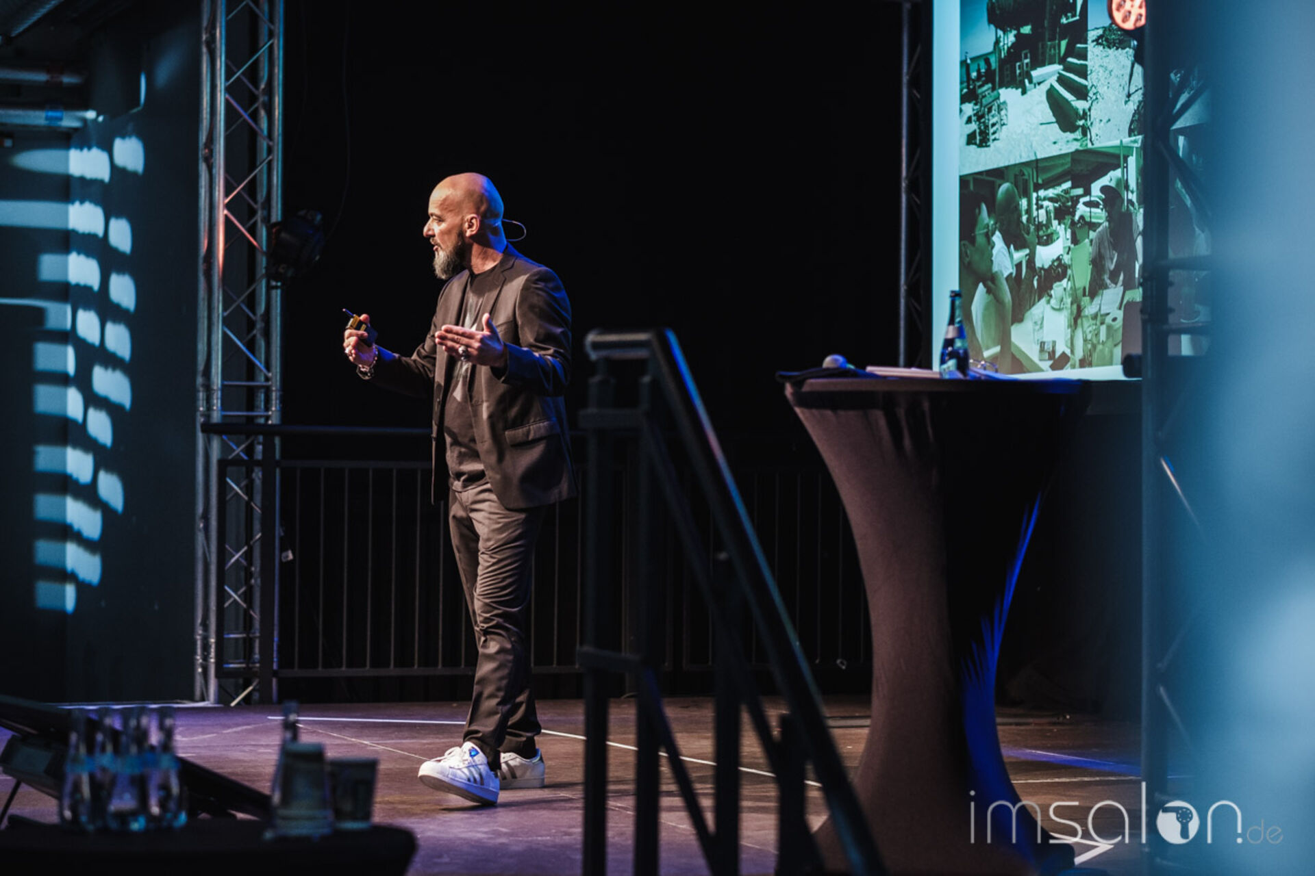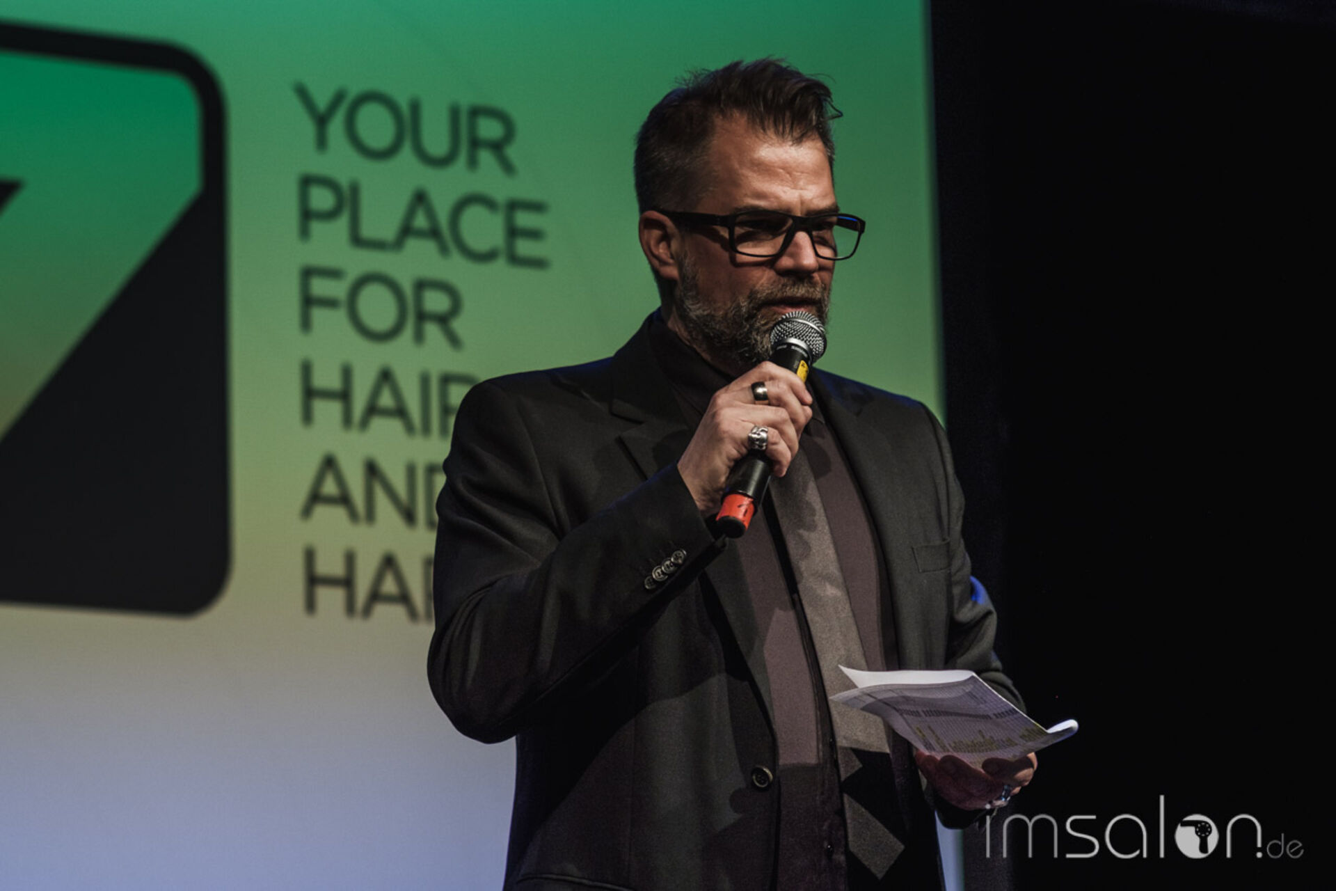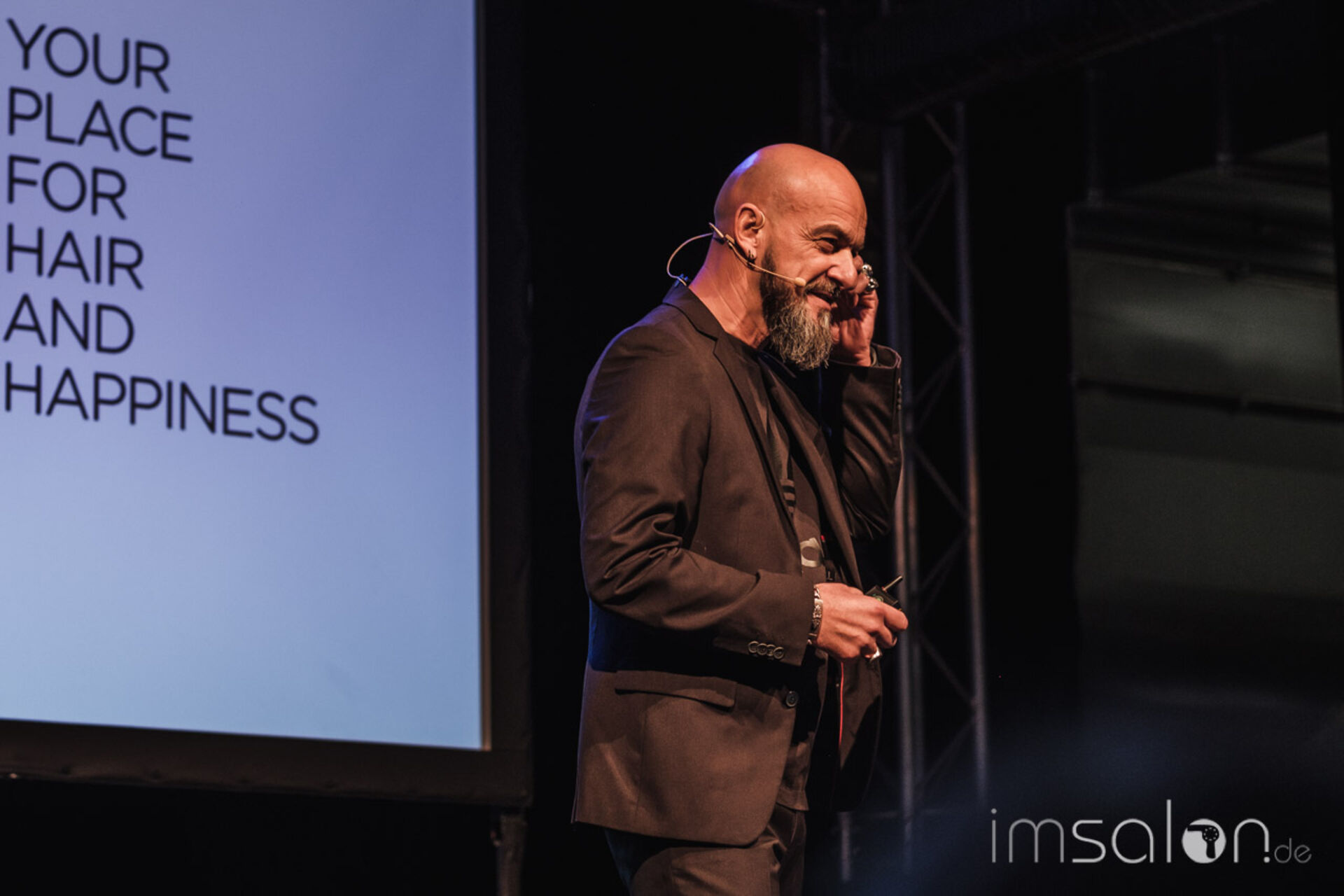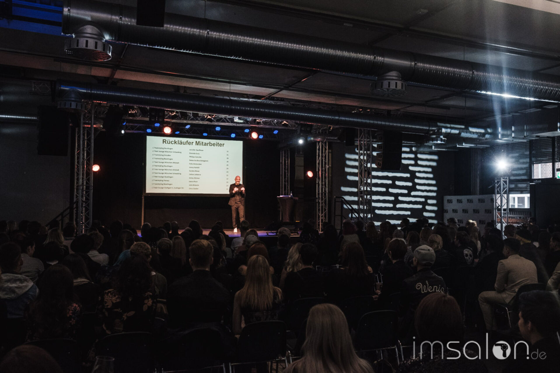 Mit Charme und Witz präsentiert Frontmann Achim Rothenbühleraktuelle Unternehmenszahlen zu Gesamtumsatz, Mitarbeiterinterna und Neukundengewinnung durch neue Salonkonzepte.
