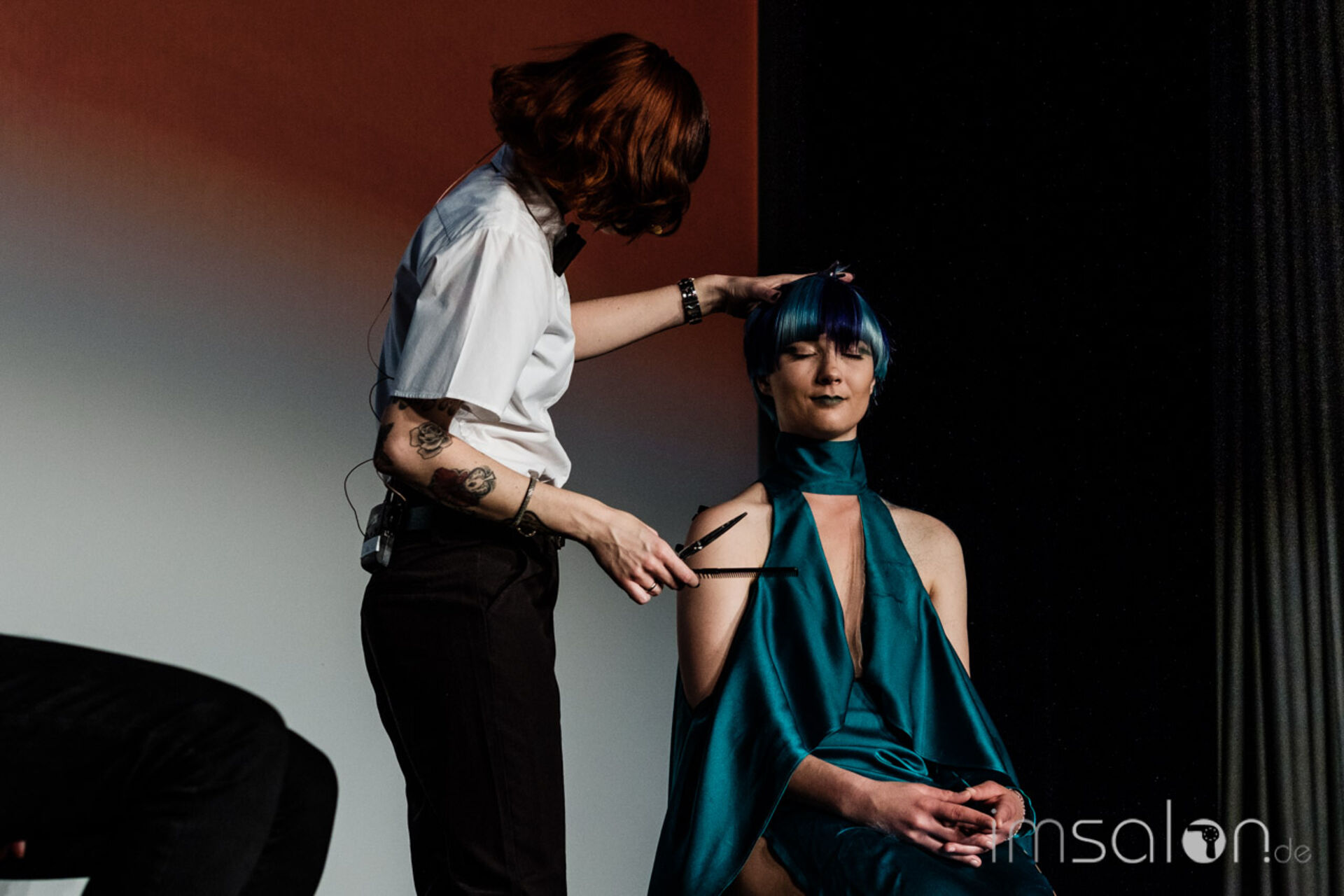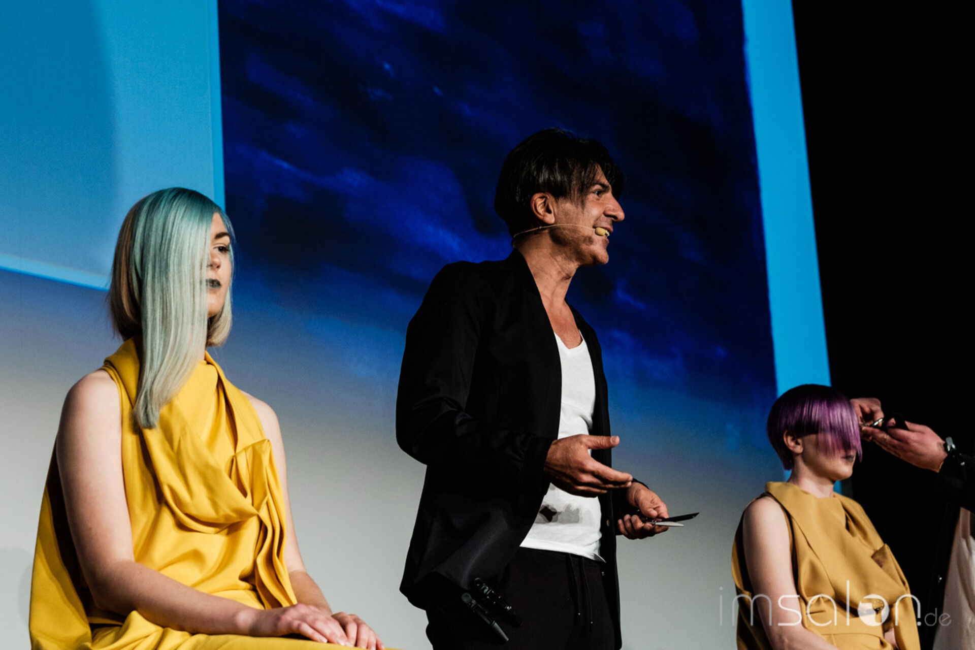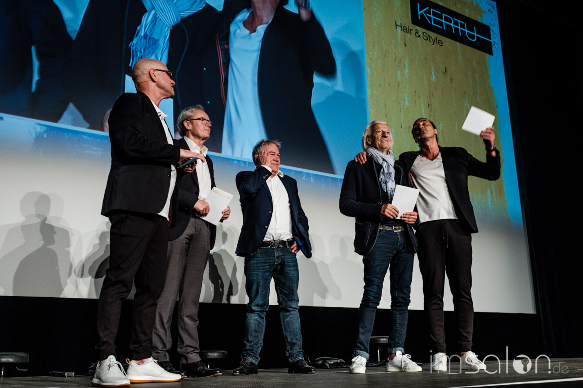 Auf der Bühne: Die KERTU Akteure Wilfried Pflüger, Janni Ossas, Ufuk Sahin, Karin Peta (Schnitt & Farbe) und Olivia Bucher(Langhaar-Kreationen)