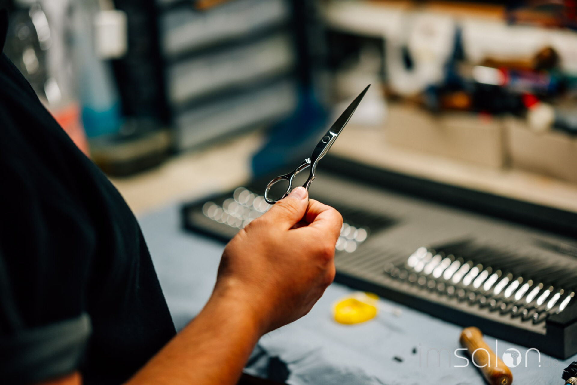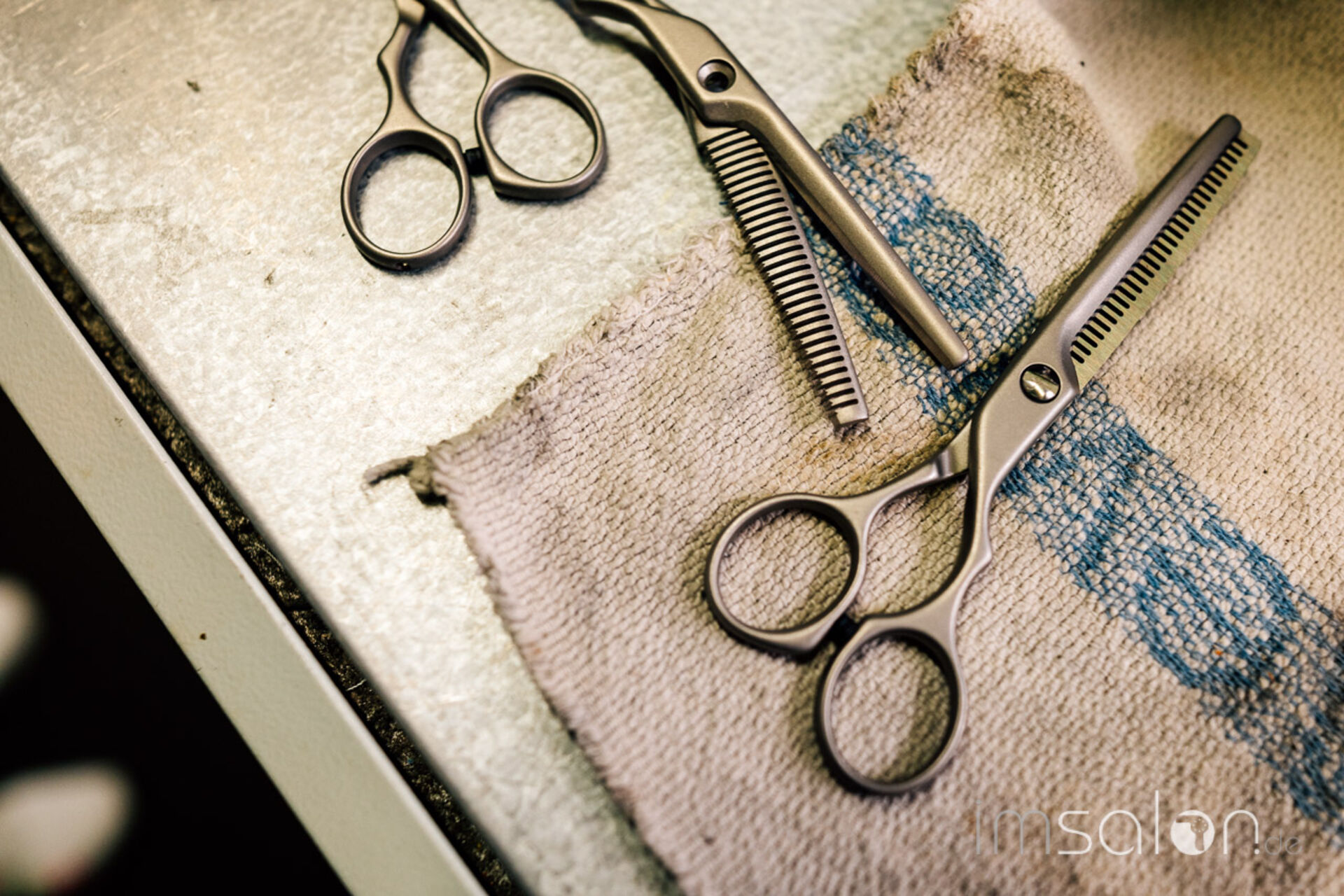 Ich bin ein Stück schlauer, ab morgen wird alles anders: Ich werde meine Schere nach jedem Kunden mit lauwarmem Wasser abspülen, mit einem Mikrofasertuch polieren und die Schraube ölen. Wenn ich unsicher bin, ob meine Schere mal wieder zum Schleifservice muss, habe ich gelernt, dass ich die Schärfe an einem Stück Klarsichtfolie testen kann. Zerteilt die Schere die Folie butterweich in Stücke, ist alles gut.