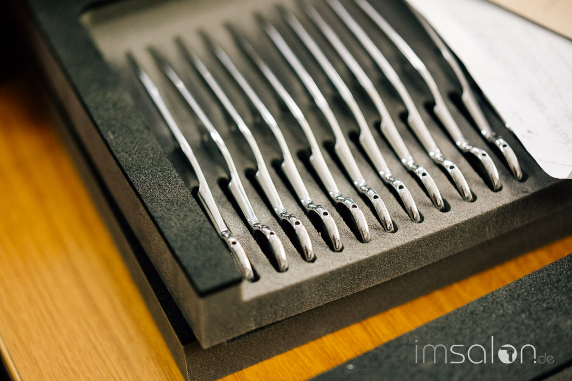 Abseits dessen ging es in diesem Jahr in die Tondeo Scherenproduktion in Solingen, zu der Petra Brockmann und Thomas Brockmann-Knödler gemeinsam mit Tondeo Geschäftsführer ►Peter Mirtic luden. Und das nicht ohne Grund werden doch hier die Scheren der ORGÆNIC Collection für Organisches Haareschneiden produziert und nicht zuletzt die weltweit erste runde Haarschneideschere namens ORGAENIC Line.