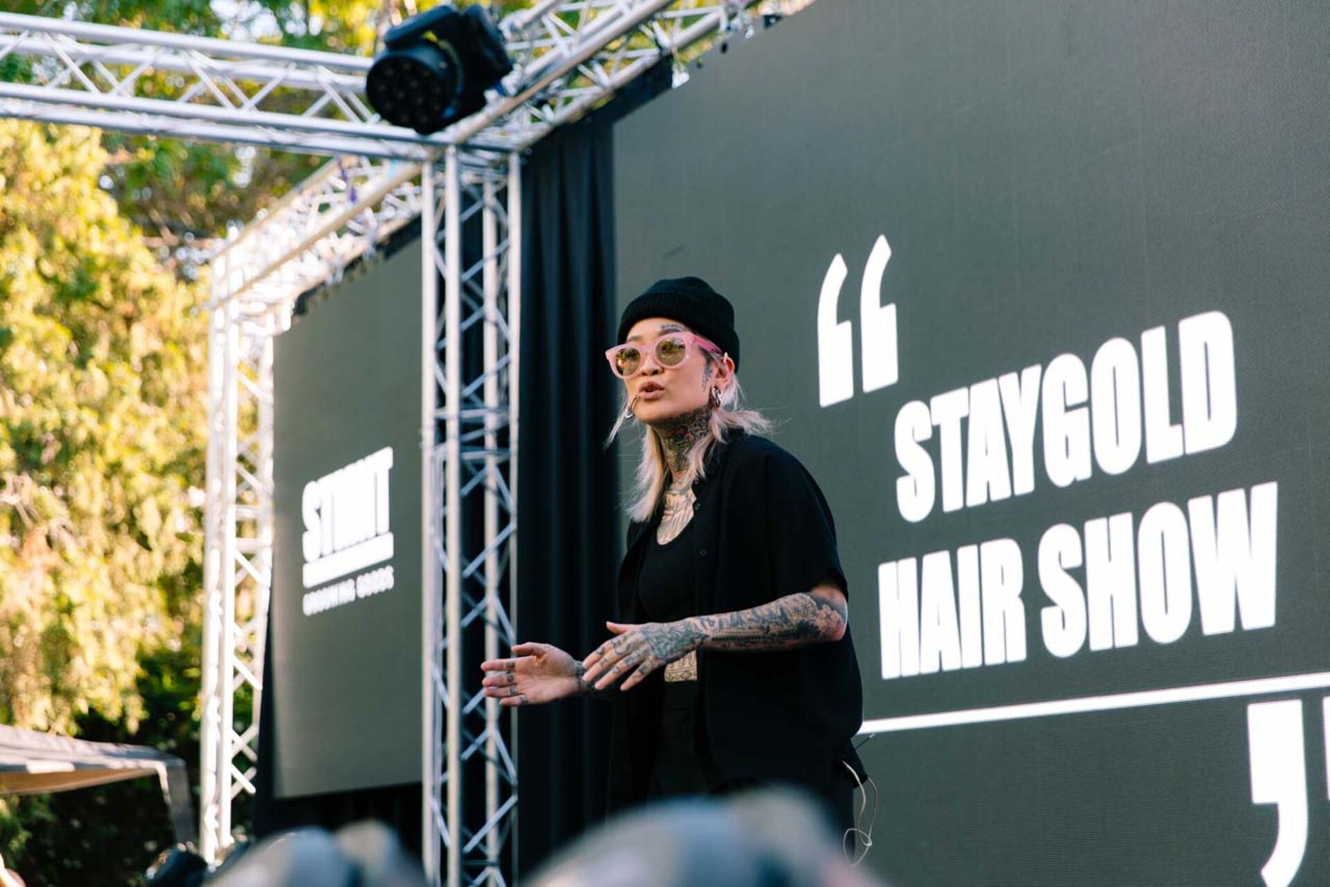 Baggy Hosen, Mützen, Caps, Tattoos, große Sonnenbrillen – das gab es beim STMNT Summit in Barcelona viel zu sehen. Was es sonst Spannendes zu entdecken gab? Im Austausch mit der STMNT Community fiel im Zusammenhang mit Trends häufig die Wörter „Mullet“ und "Male Grooming".  Aber auch Mittelscheitel, Wolf Cut, Locken (egal ob Natur oder Dauerwelle) hörte man oft.