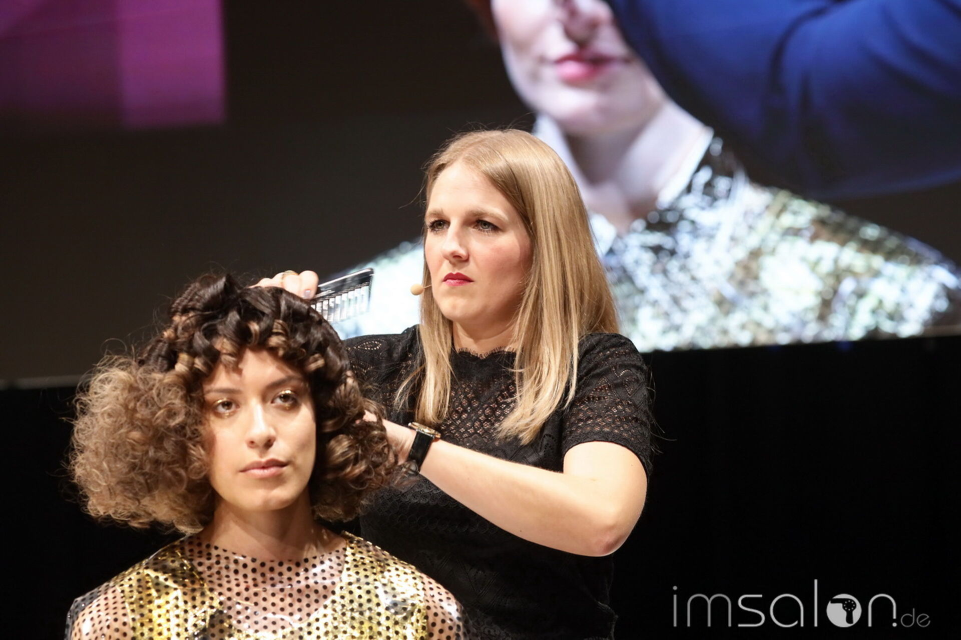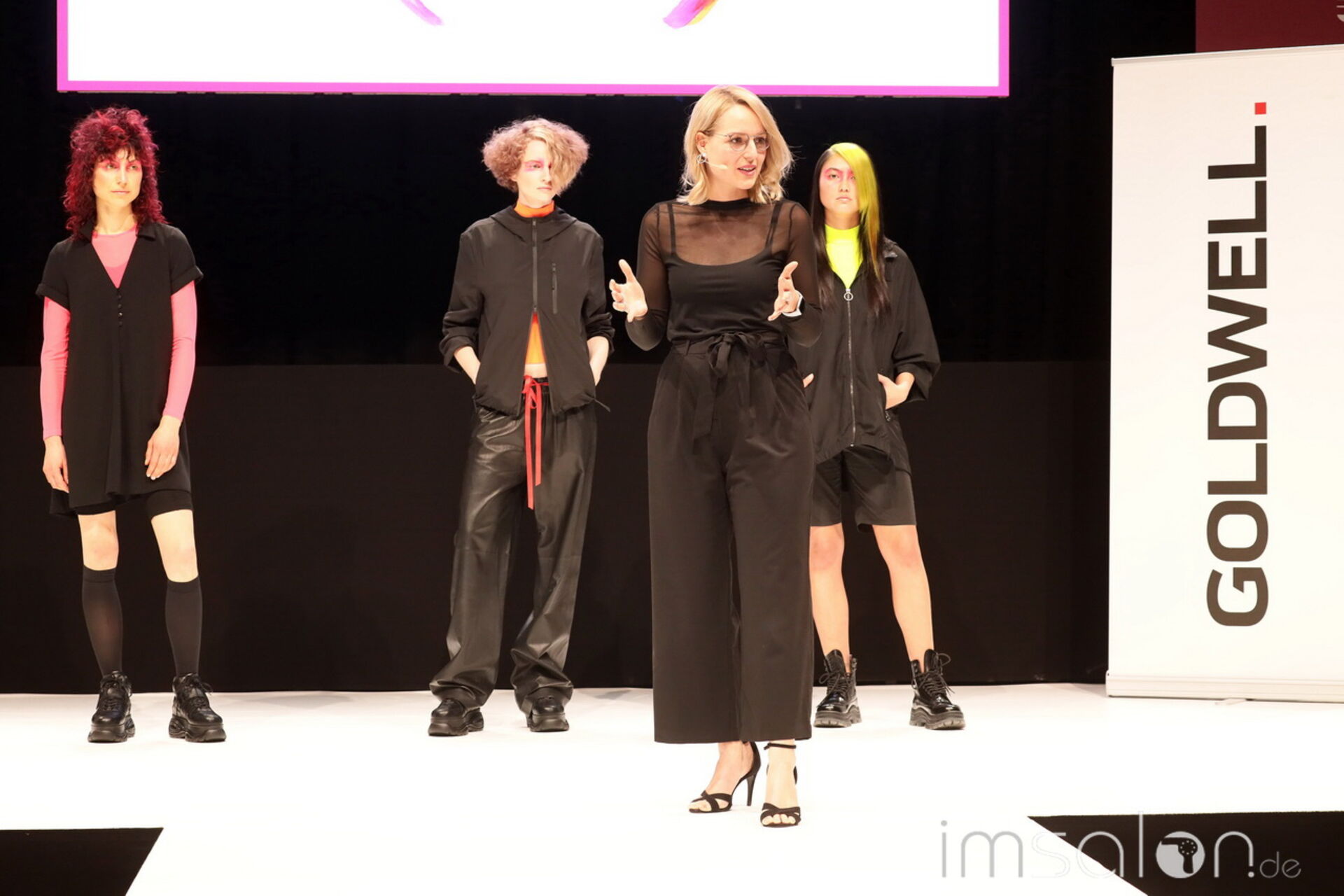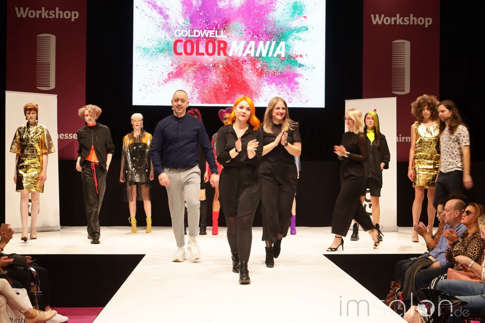 Auf der Bühne für Goldwell: Jesus Rodriquez, Jasmin Kreis, Stefan Sievers, Jana Franzkowiak, Lisa Hummelt, Lisa Köstler Freitag und Robin Voral.