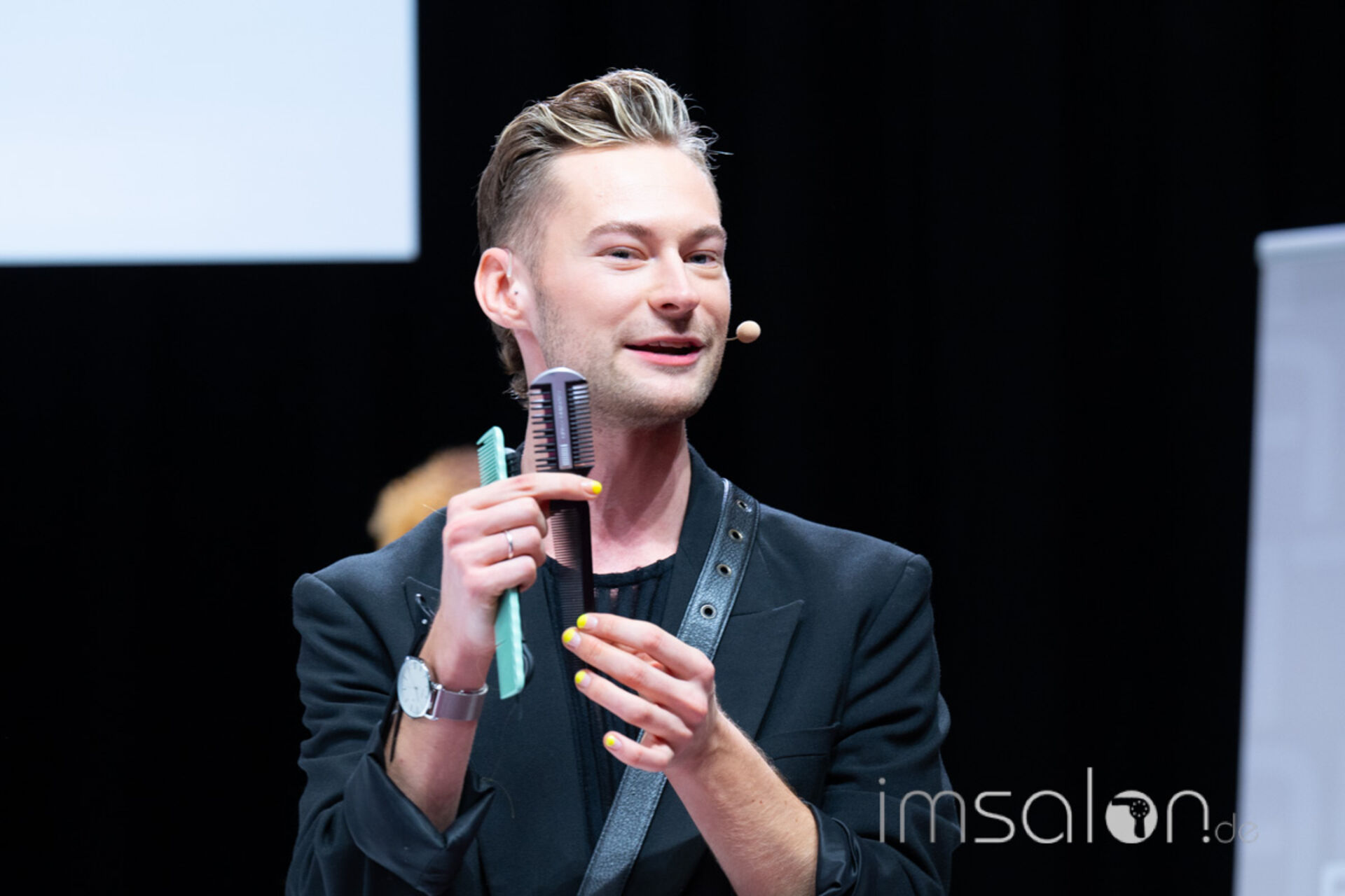 Messer-Haarschnitte eröffnen neue und kreative Wege, um angesagte Looks zu kreieren, die fedrig-leicht und grafisch sind. Auf der Bühne kommen die Donald Scott NYC Tools zum Einsatz - vielseitig, ergonomisch,  einfach in der Handhabung. Für jeden Haartyp geeignet, um Struktur, Bewegung und harmonische Übergänge zu schaffen.