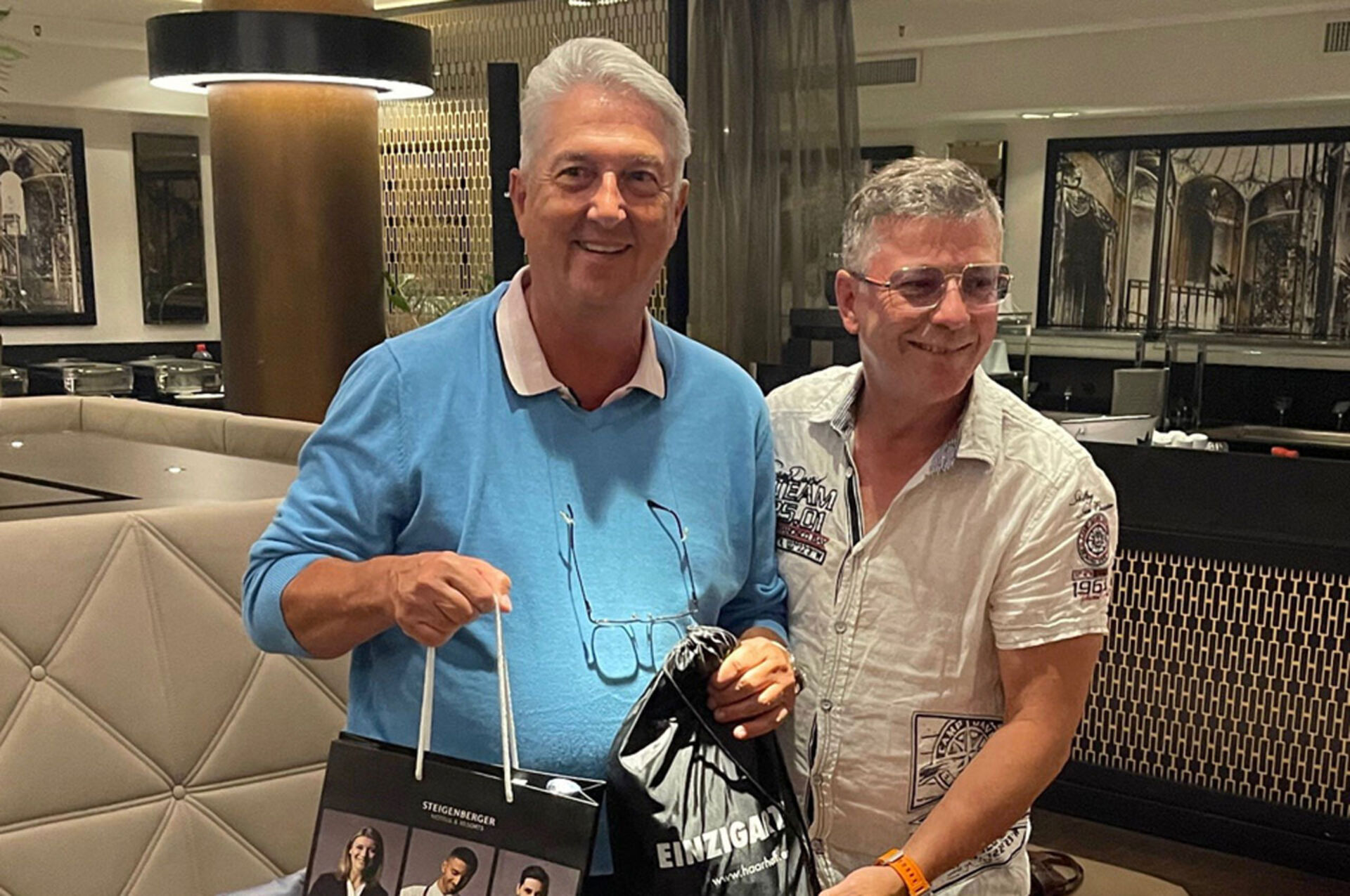 Während die Organisatoren Jens Dagné und Ludwig Janz mit ihrem engagierten Team in Friedberg letzte Vorbereitungen für das Golf Charity Event am nächsten Tag trafen, sorgte Intercoiffure Vorstandsmitglied Olaf Schrage derweil für Stimmung beim Spaßturnier im Bad Homburger Kurpark. Auf dem ältesten Golfplatz Deutschlands traten 28 Teilnehmende an, um auf den historischen Bahnen ihre Fähigkeiten unter Beweis zu stellen. Zum Ausklang versammelte man sich bei dem ein oder anderen guten Gläschen Wein, um die "Missgeschicke" des Tages zu teilen.