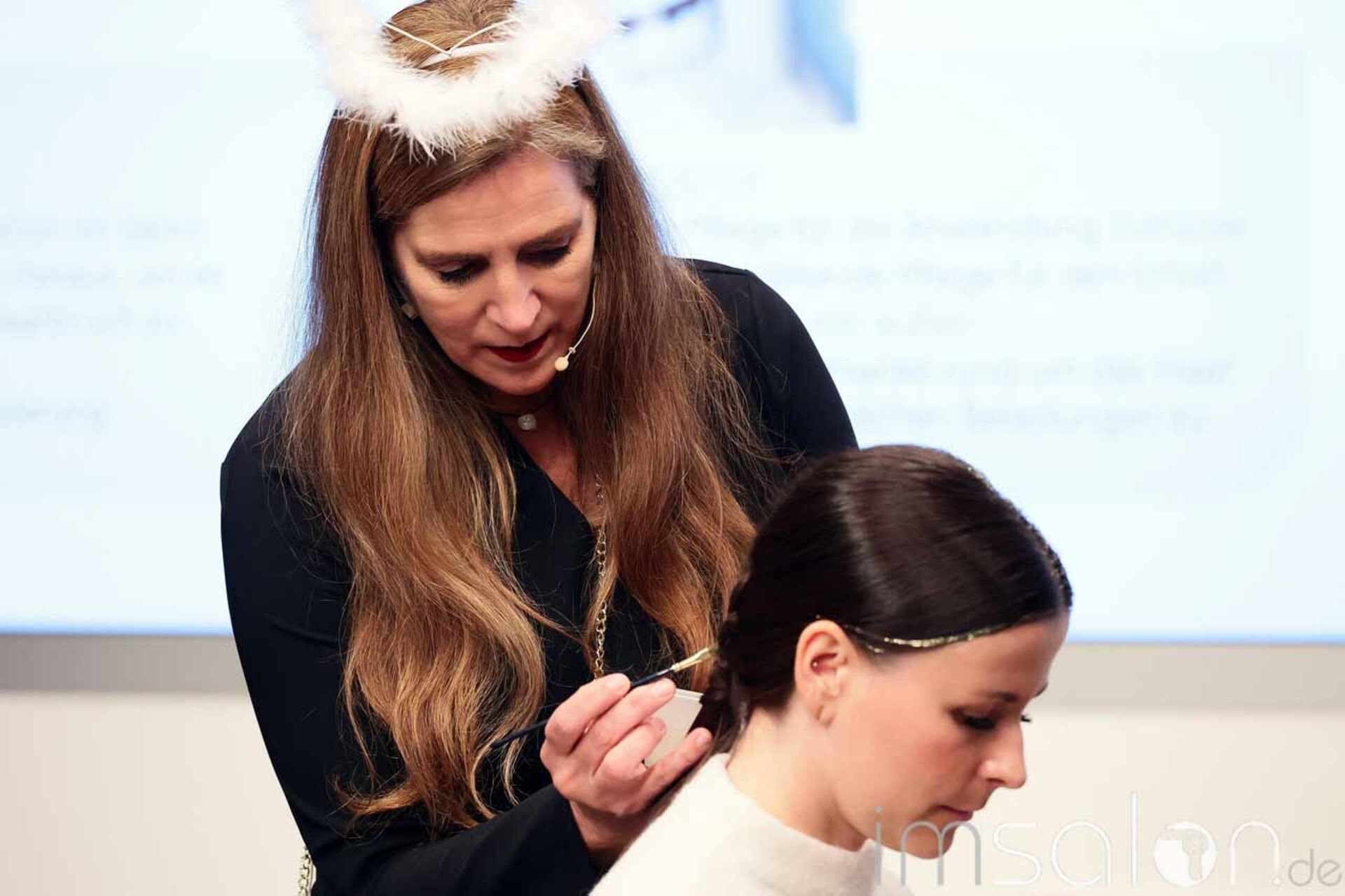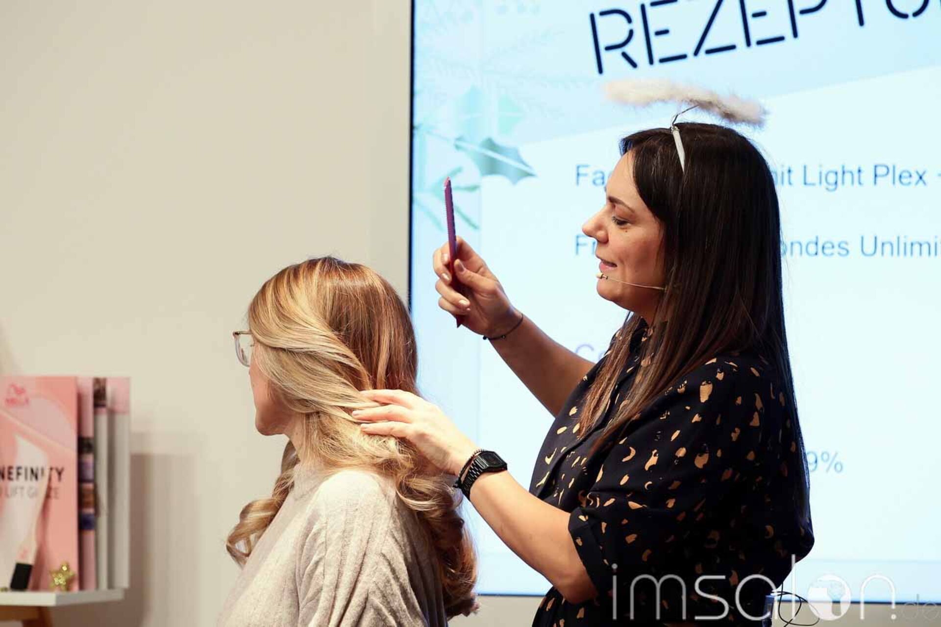 Glaze & Care waren das große Thema; u.a. Shinefinity, Illumina und Blondorplex sowie Faceframing und Freihand zeichnen die Anwendungen, die die Looks mit harmonischen Farbverläufen und individuell abgestimmten, vielfältigen Farbschattierungen ermöglichen. Silber und Goldsträhnen im Haar sorgen für den finalen Christmas-Touch – gepinselt mit Glitzerpuder aus dem Bastelbedarf und vermischt mit Sculp Force vom EIMI.