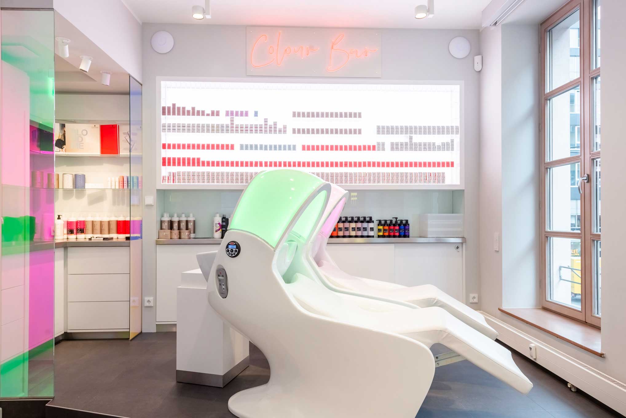 Dort wird ausschließlich eine sogenannte Flagship-Brand angeboten, die einzig und allein für das House of Schwarzkopf konzipiert worden ist und die es auch nur hier oder im Onlineshop zu kaufen gibt. Wir haben großen Respekt davor, dass wir in diesen Räumlichkeiten mit einem Friseur zusammenarbeiten und der Fokus soll daher auf professionellen Produkten liegen.