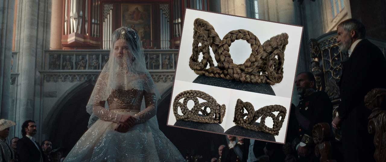 Die Produktionsfirma hatte den Wunsch von einem geflochtenen Key-Element, das Ähnlichkeiten zu einer Krone zeigt. Anfangs glaubte ich, dass das Teil für Elisabeths Krönung in Ungarn von Elisabeth eingesetzt würde, jedoch wurde es für die Hochzeits-Szene verwendet.
