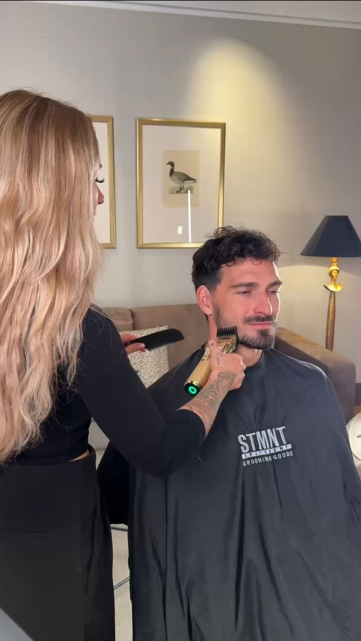 Ich muss ehrlich gestehen, dass ich kein großes Interesse an Fußball habe, deswegen halte ich mich mit Prognosen zurück. Neulich war aber Mats Hummels bei mir, er bekam einen natürlichen Look mit längerem Haar am Oberkopf. Das Ganze setzte ich mit Scherentechnik und natürlichem Taperfade um. Beim Bart habe ich alles natürlich gelassen mit schönen Verläufen.