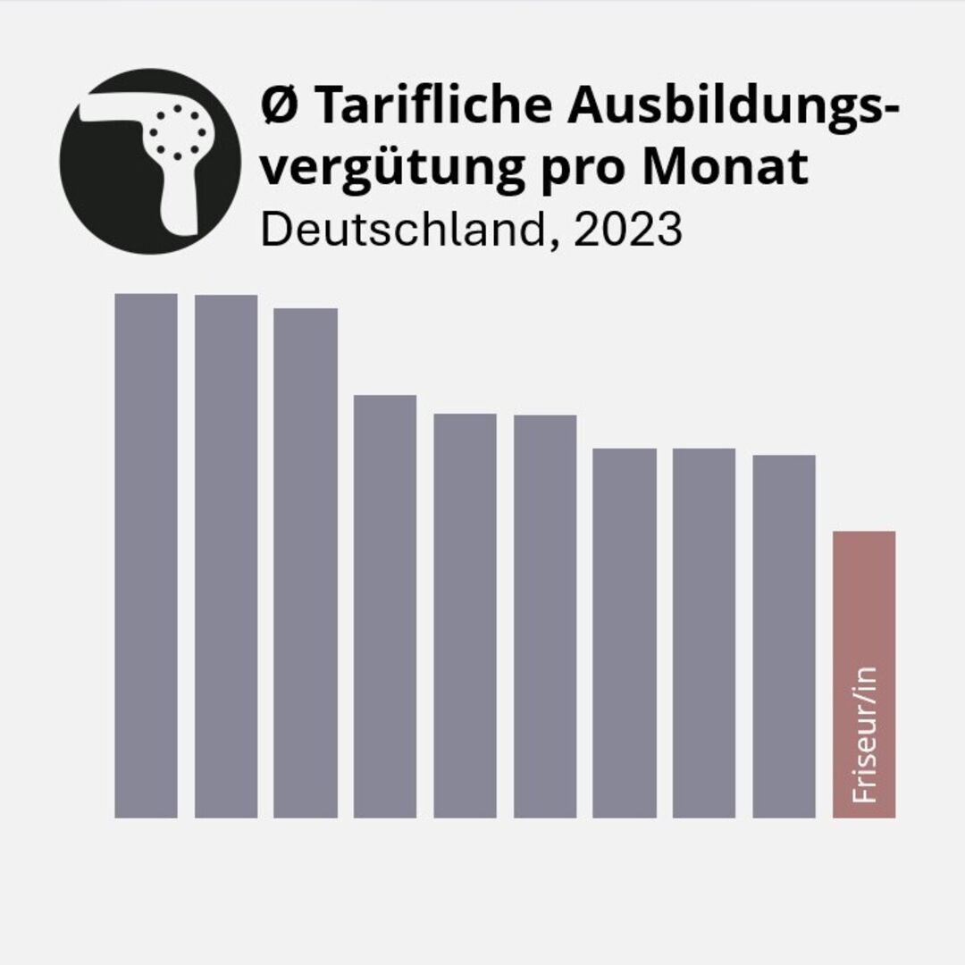 Ausbildungsvergütung 2024: Rekord Anstieg doch Friseure wieder auf letztem Platz