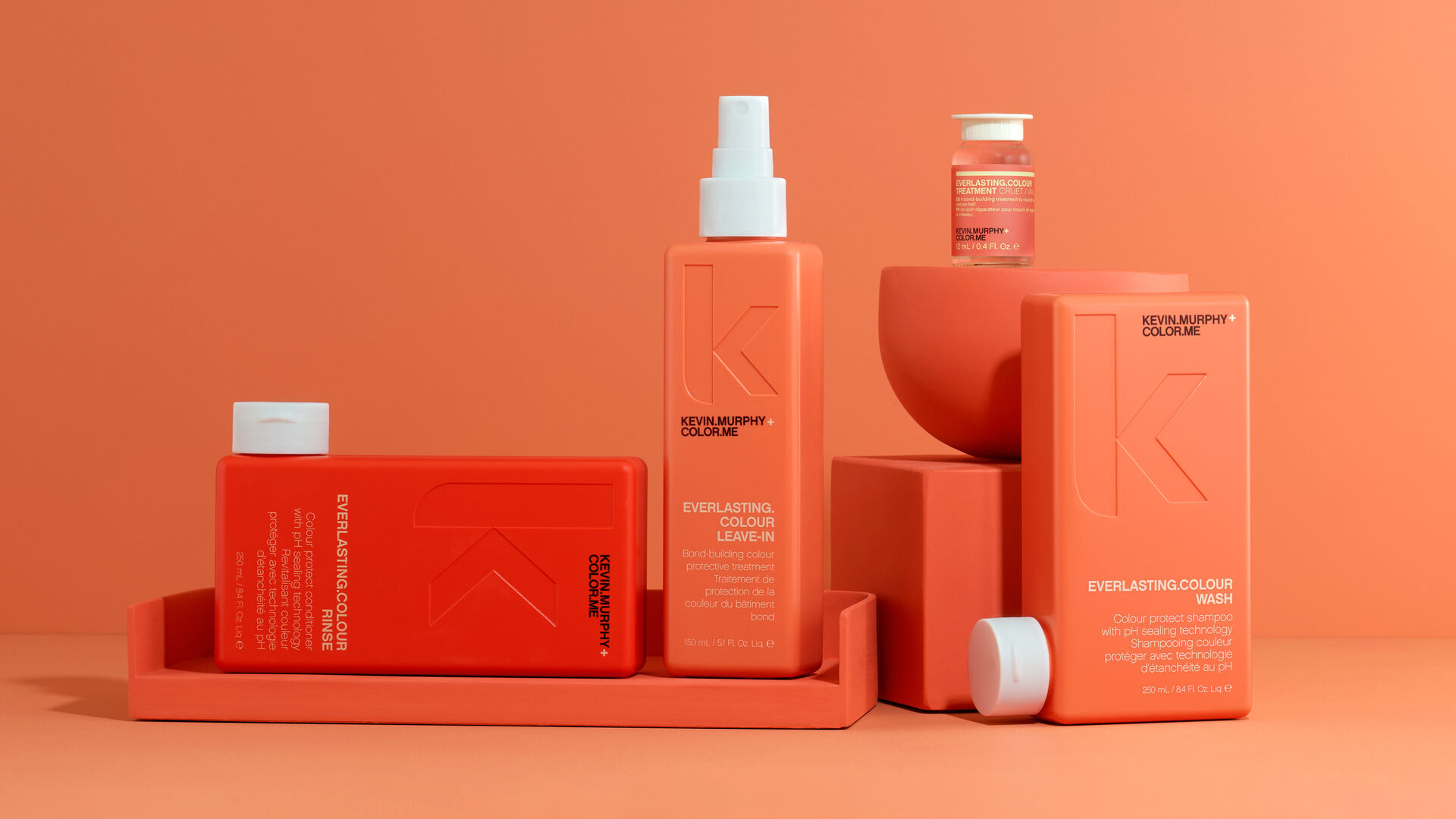 Die neue Pflegeroutine von Kevin Murphy umfasst die Produkte Wash, Rinse, Leave-In sowie Treatment und beschreibt sich nicht nur als „coloursafe“, sondern auch „colour proof“. Die 4-Step-Routine Everlasting Color sorgt für eine längere Haltbarkeit der Pigmente im Haar und für eine starke Struktur. Die neuen Formulierungen unterstützen das natürliche Mikrobiom der Kopfhaut und wehren Mineralienrückstände ab. Darüber hinaus wird das Haar mit einer wertvollen Superfood-Mischung aus Bio Schwarzkümmelöl und Inulin aus der Zichorienwurzel vor Aggressoren aus der Umwelt bewahrt. Der saure pH-Wert hilft dabei, die Kuticula zu schließen und damit Haarbrillanz zu erhalten.