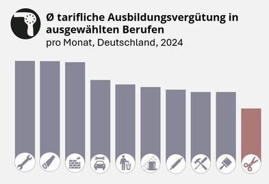 Ausbildungsvergütung 2024: Rekord Anstieg doch Friseure wieder auf letztem Platz