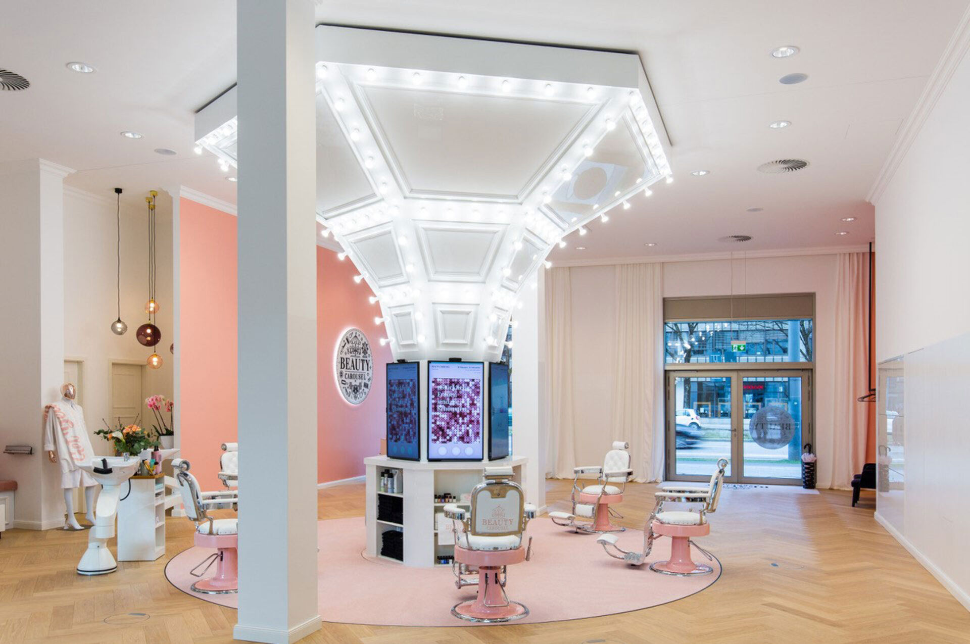 Mit dem Slogan "Begeben Sie sich auf eine 60-minütige Fahrt und steigen sie von Kopf bis Fuß perfekt gestylt aus - das Beauty Carousel im Schwabinger Tor in München macht Beauty-Wunder wahr!" deutet darauf hin, dass man sich schon beim Betreten des Beauty Carousels in einer anderen Welt wiederfindet.