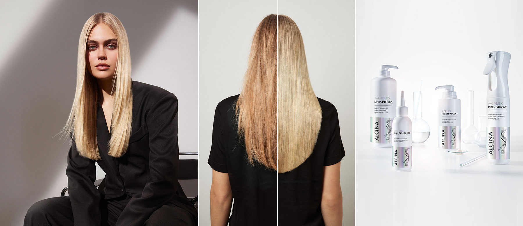“In einem ersten Schritt bildet der AminoComPlex bereits vor dem Blondieren oder Colorieren ein Strukturnetz, das die Haarsubstanz bei chemischen Beanspruchungen schützt. Nach dem Blondieren oder Colorieren werden im zweiten Schritt Schäden repariert und die Haarstruktur wird ausgeglichen. Pflegestoffe versiegeln das Haar. Dies ist entscheidend, um die Farbe zu erhalten, den Glanz zu verstärken und das Haar widerstandsfähiger zu machen. Die A\CPLEX SYSTEMPFLEGE bietet somit eine ganzheitliche Lösung, die es ermöglicht, Haarschäden effektiv zu beheben und das Haar langfristig zu stärken. Um das Salonergebnis aufrechtzuerhalten, empfehle ich für zuhause die beiden Pflegeprodukte der Serie.”