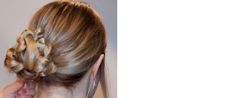 Step 1| Die Harare zu einem seitlichen Zopf zusammenbinden, mit einem Haargummi fixieren.