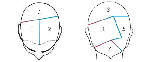 Tipp: Die Platzierung der Abbunde kann beliebig variiert werden. Abhängig vom Scheitel die Konturenhaare (1– 2 cm) nicht mit in die Abbunde nehmen, um eine hellere Gesichtskontur zu schaffen.