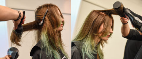 Step 14| Das Haar mithilfe einer TIGI PRO Large Round Brush trockenföhnen.