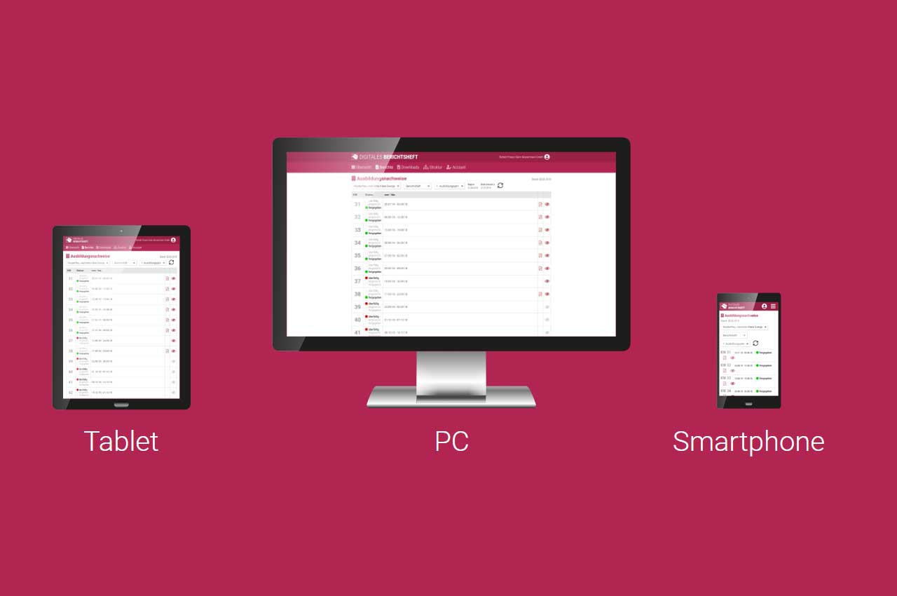 Daraufhin erhalten sie Zugang auf die Verwaltungsoberfläche und einen Zugangscode, den Sie dem Azubi weiterleiten. Sobald die Azubis den Code eingegeben haben, können sie Berichte an den/die Ausbilder*in versendet und von diesem abgezeichnet werden.