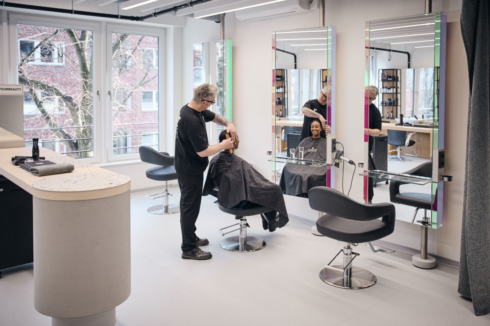 Das „House of Hair“ ist auch ein Ausbildungsort: Jährlich werden hier rund 2.000 Friseurinnen*Friseure geschult. Auch die Initiative ►Shaping Futures“, die sozial benachteiligten jungen Menschen das Friseurhandwerk beibringt, ist Teil dieses Programms.