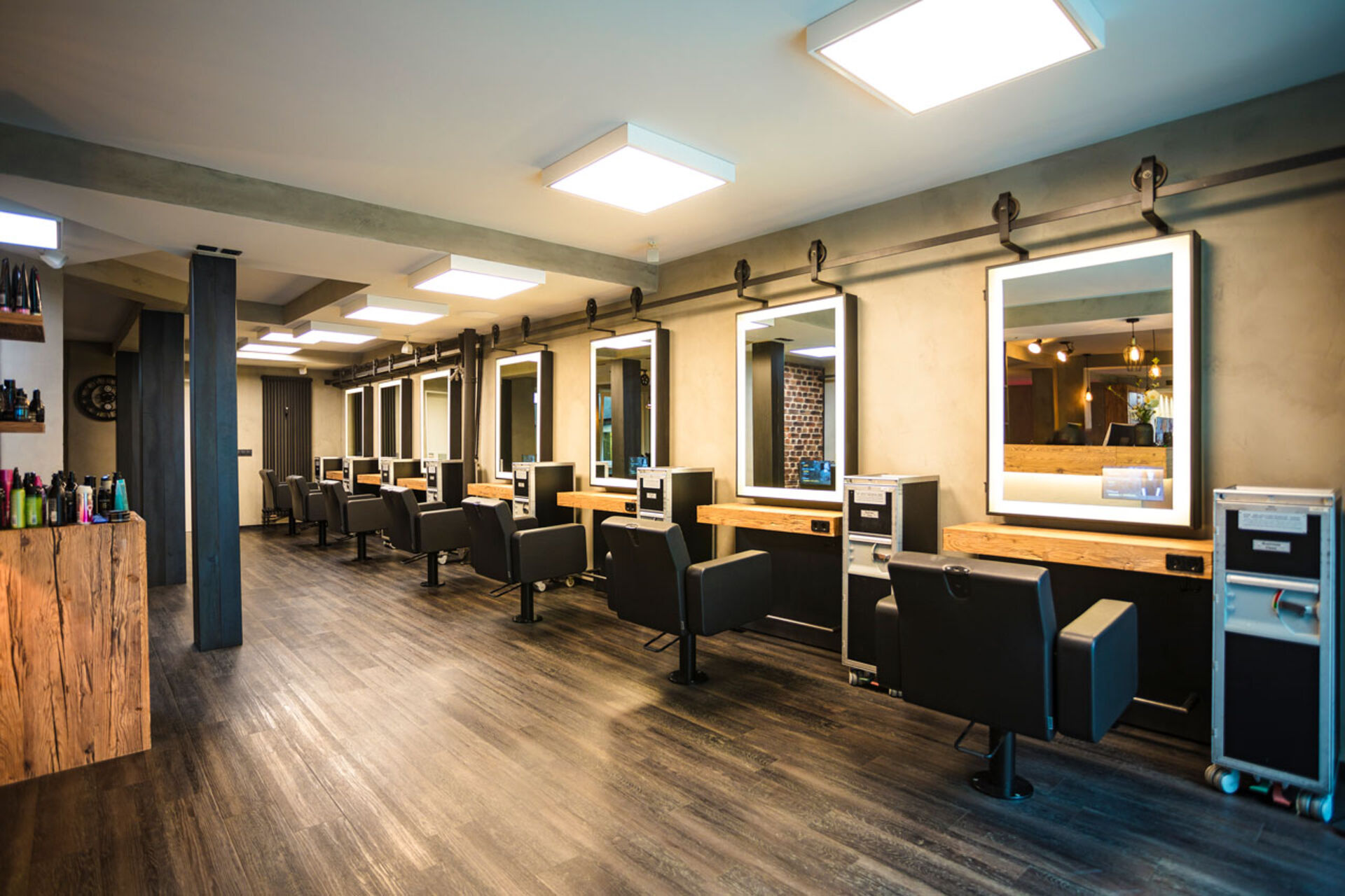 - Verschiedene Lichteinstellungen an Wasch- und Schneideplätzen simulieren unterschiedliche Situationen, wie Haarfarben im Lichteinfall.