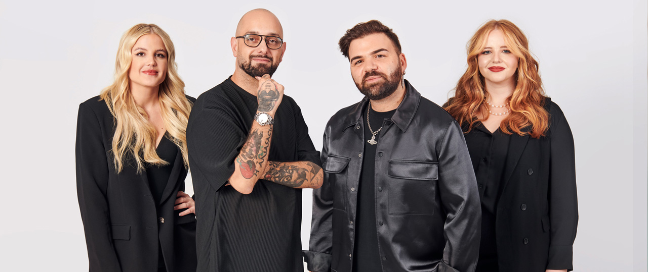 Isabel Schreiber, Anastasios Dimitriou, Daniele Zimotti und Anna-Carina Todt (v.li.) sind die Creative Heads hinter der Kollektion | Credit: Keller the school