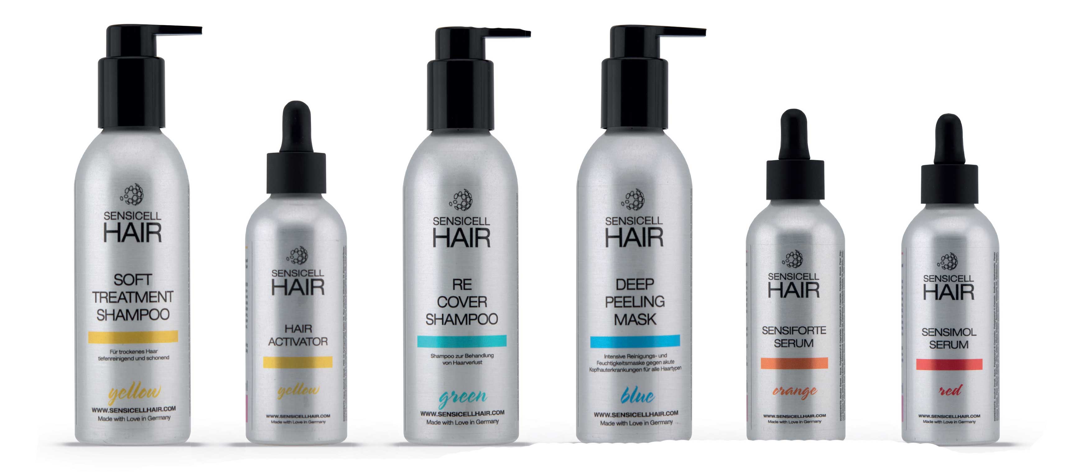 Wir haben eine eigene Produktlinie entwickelt‚ 'Sensicell-Hair‘. Nach einer professionellen Kopfhautanalyse und eingehender Beratung stellen wir Kunden ein individuelles Produktpaket zusammen. Der Kunde, muss die Behandlung zu Hause konsequent durchzuziehen, dabei erzielen wir ebenfalls großartige Behandlungserfolge. Wir haben dutzende Vorher-Nachher Bilder.