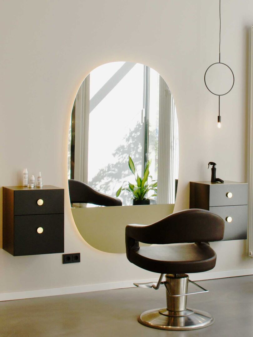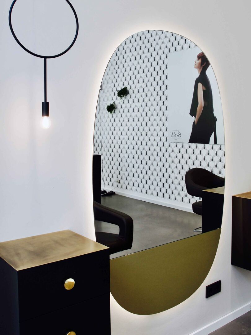 Japandi-Stil mitten in Berlin. Der neue Salon Bordel tritt mit schlichtem reduziertem aber trotzdem warmen, einladenden Interieur auf. Die schwarzen Elemente und organische Formen, die in Salon-Stühlen, Lampenformen, großen Vasen und ovalen Spiegeln zu finden sind, repräsentieren den Japan-Elemente.