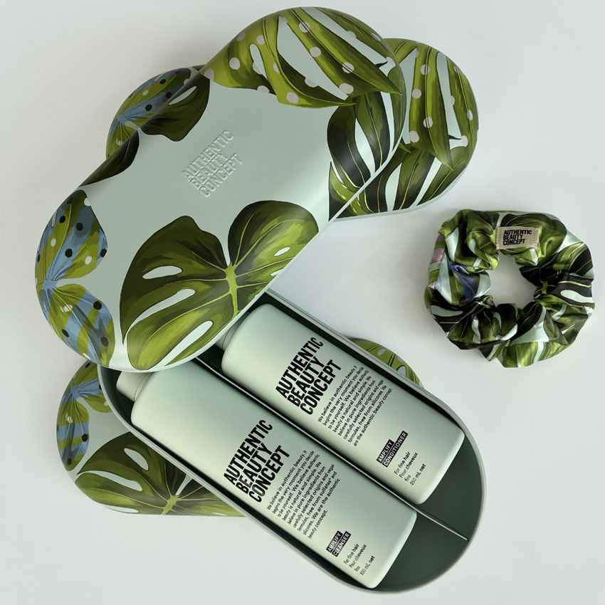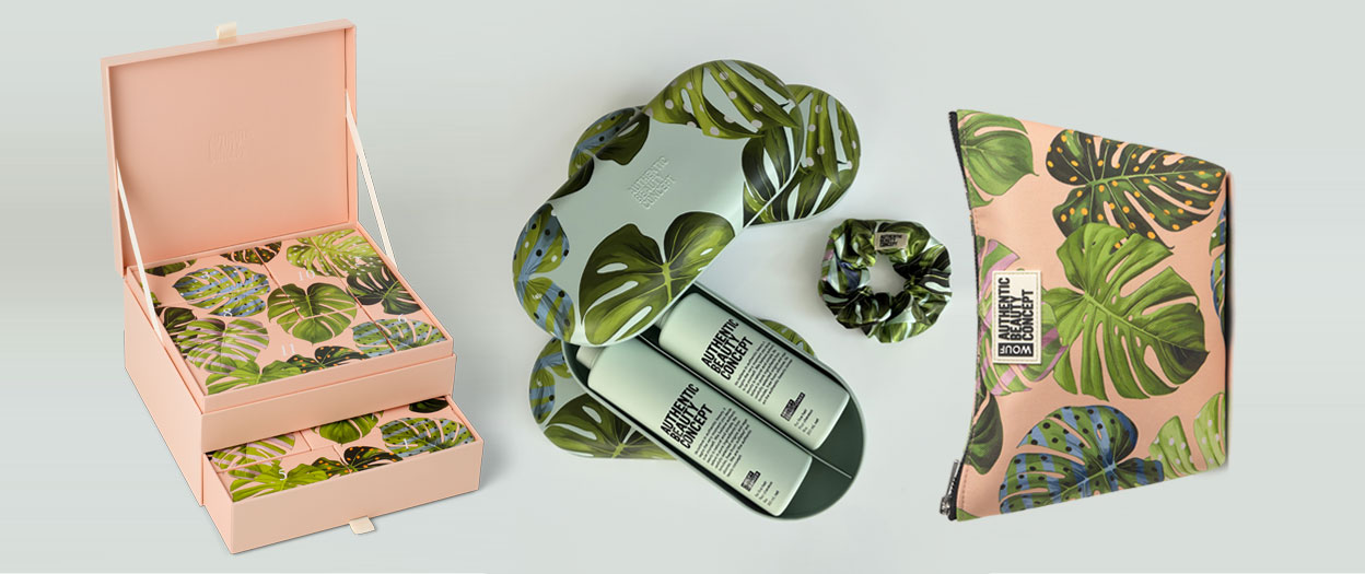 In diesem Jahr freut sich Authentic Beauty Concept, gemeinsam mit der spanischen Brand WOUF, zusammenzuarbeiten. Das Herzstück dieser neuen Limited Edition bildet eine Tasche mit handgezeichnetem botanischem Muster inklusive der Forever Fab Hair-Kollektion:
