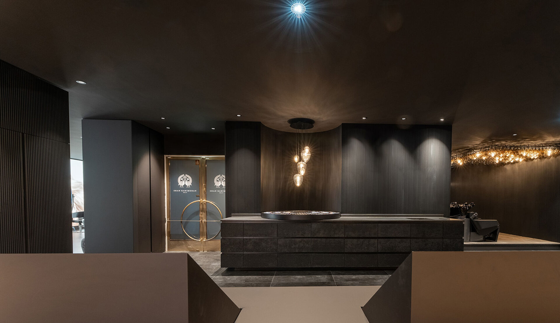 Mit diesem neuen Salon hat sich Shan Rahinkhan in Sachen Luxus selbst übertroffen. Sein Salonkonzept im Berliner KaDeWe trumpft mit 450m² lässiger Eleganz in schwarz und gold auf: lackiertes Lamellendesign, Colourbar mit eindrucksvollem Farbrad, schicke Champagnerbar und eine 12 Meter lange LED-Wand. „Diese Fläche läutet eine neue Ära des Luxus ein, wie es sie noch nicht gegeben hat“, freut sich Shan Rahimkhan